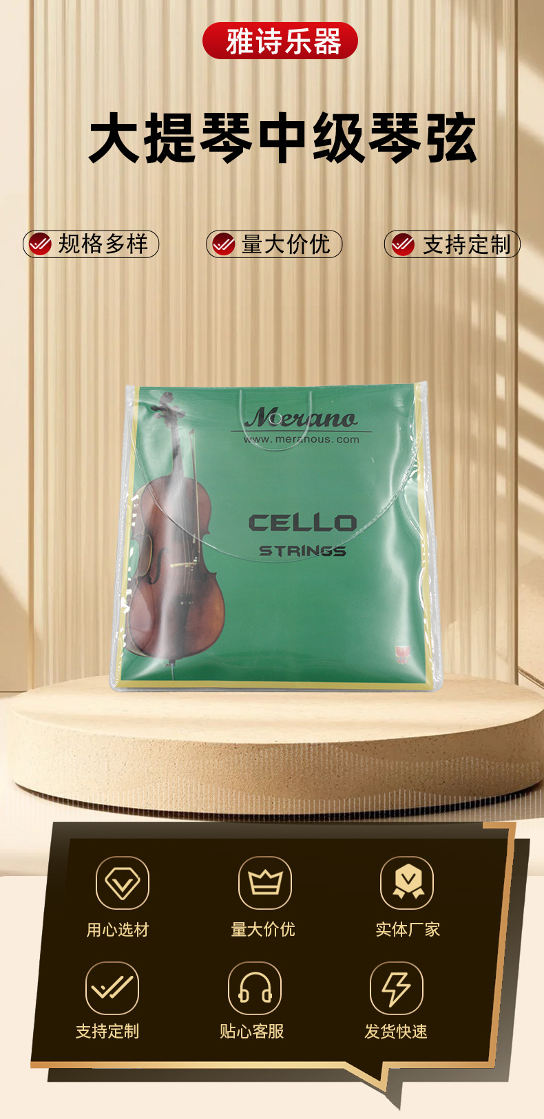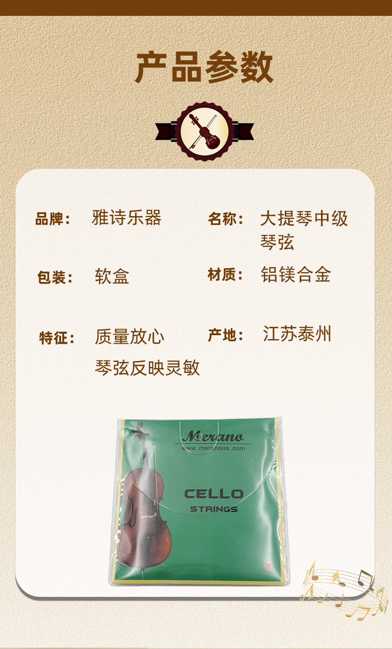 Струны для виолончели среднего уровня, индивидуальная упаковка, алюминиево-магниевый сплав