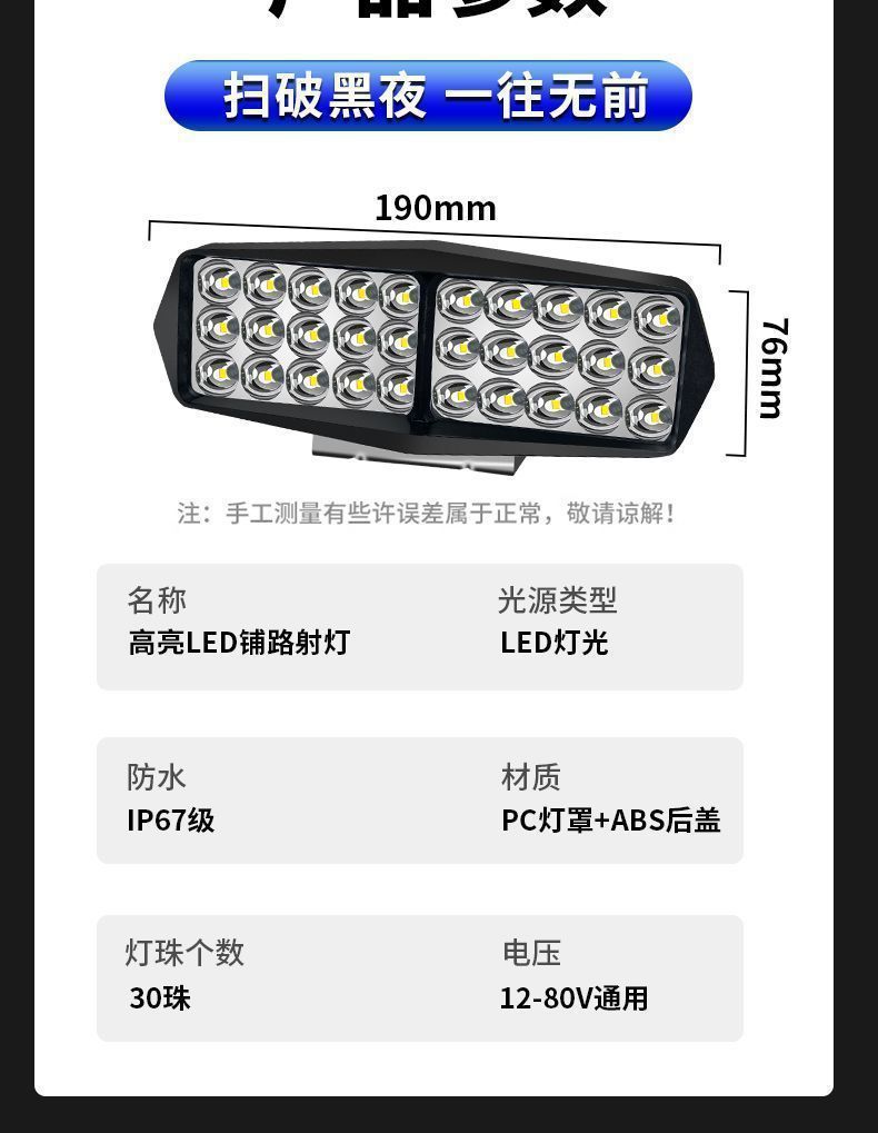 Автомобильный светодиодный прожектор 12V-80V электрический автомобильный свет грузовика фонарь для заднего хода трёхколёсного универсальный водонепроницаемый мотоциклетный фара