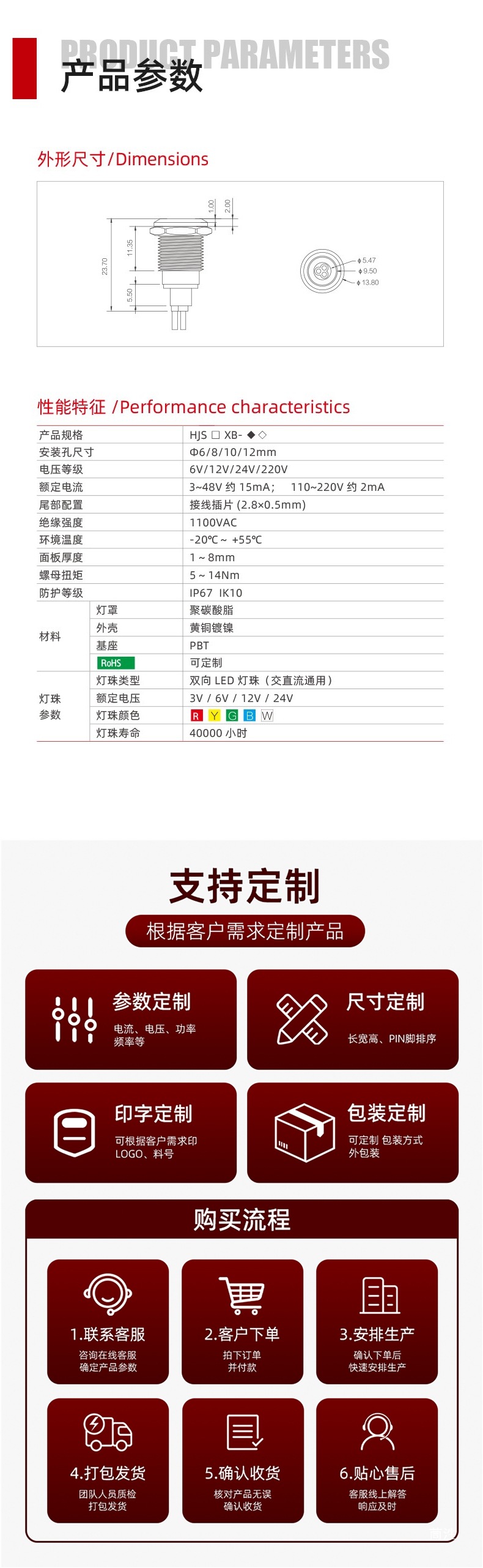 Нейтральный маленький светодиодный индикатор мощности 6/8/10/12mm металлический индикатор с проводом сигнализация