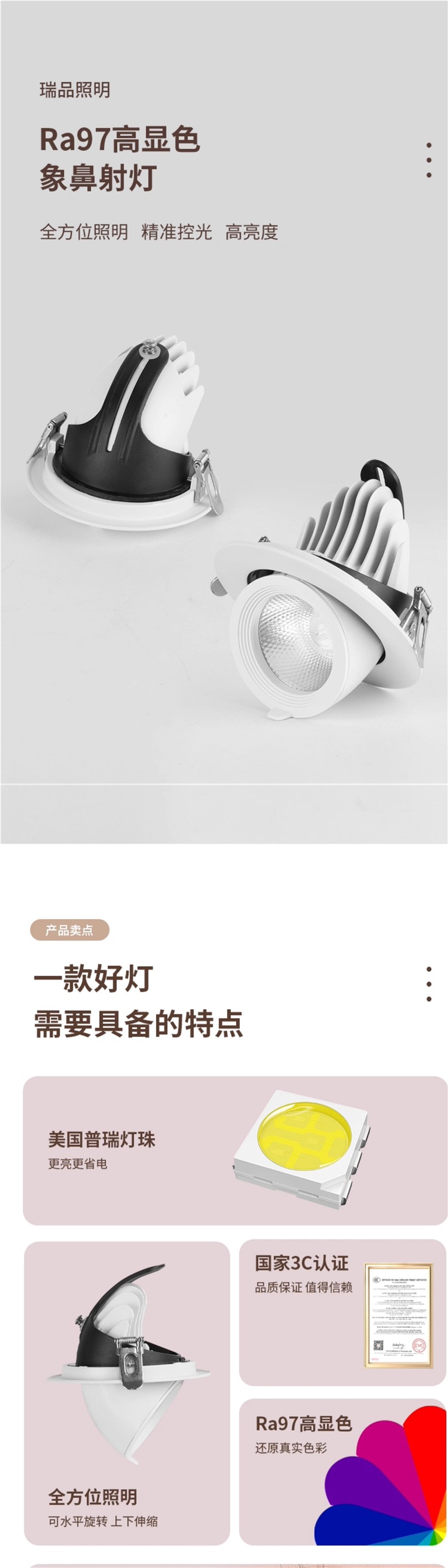 Светодиодная лампа «Слон» с высоким цветопередачей для женской одежды специальный прожектор магазин коммерческий встроенный Cob потолочный светильник 4000K