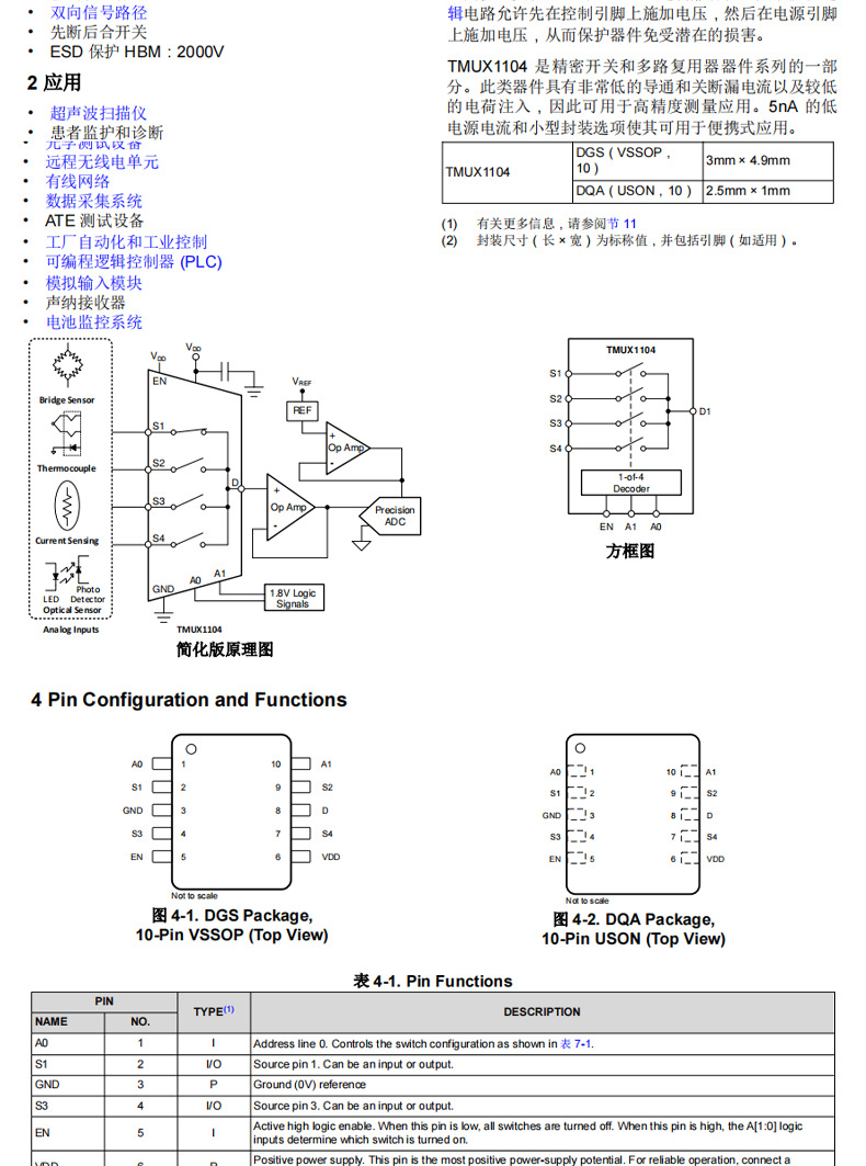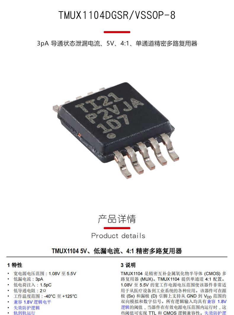 Оригинальный Tmux1104Dgsr Vssop-8 3Pa ток утечки в состоянии проводимости 5В 4:1 мультиплексор