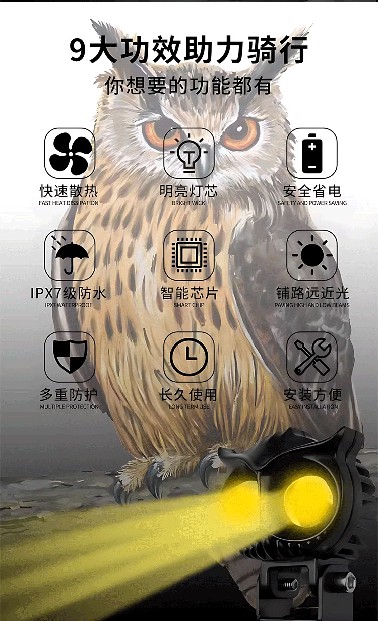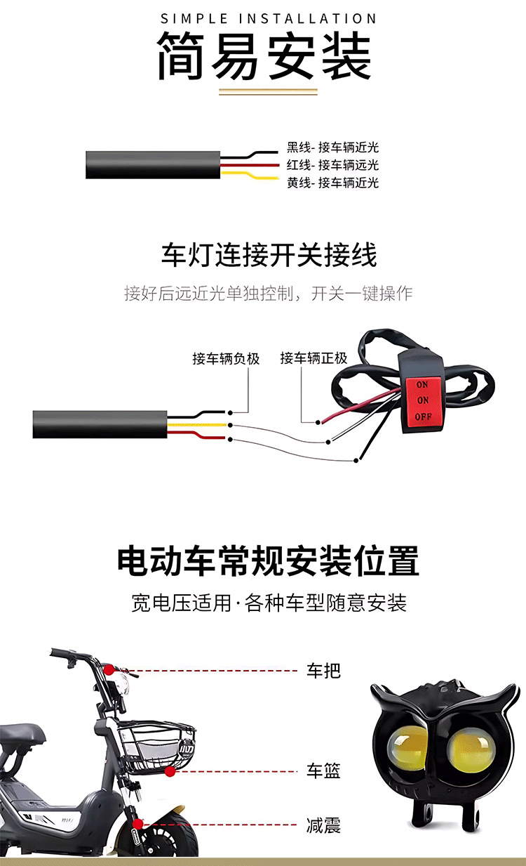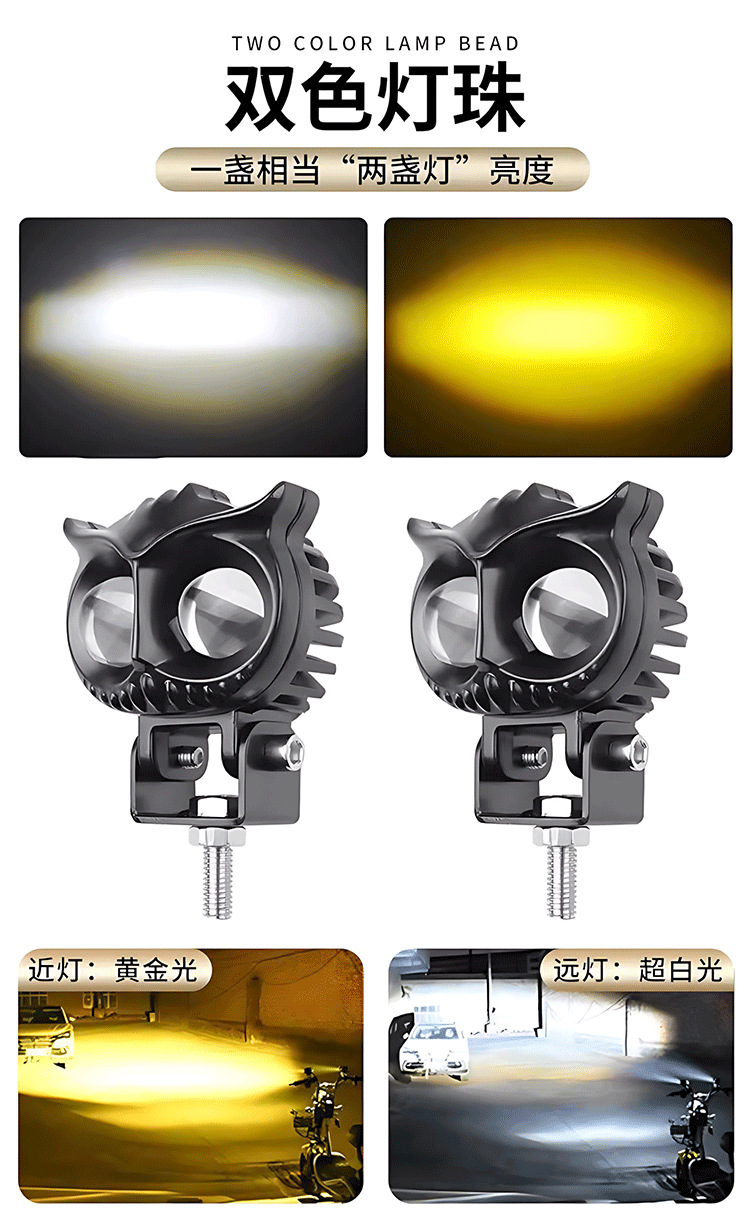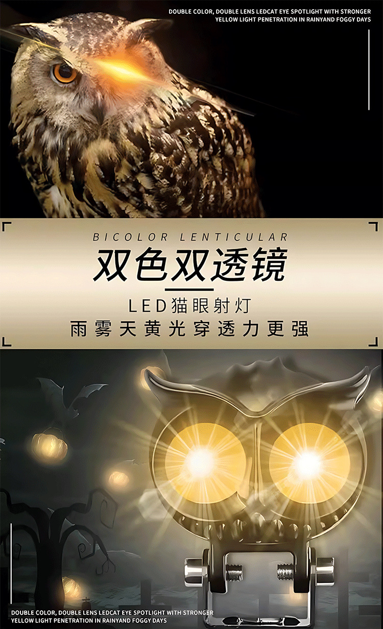 Светодиодный фара совы жёлтый и белый двойной свет тангенциальный для модификации электрического автомобиля с внешним прожектором