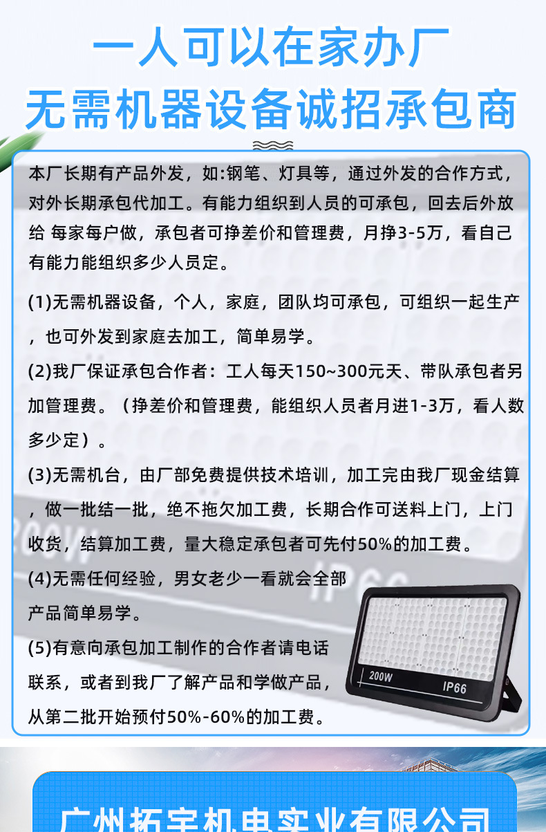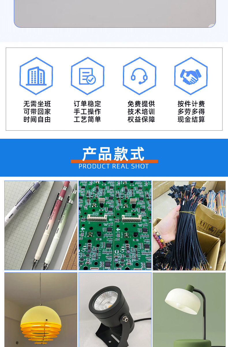 Ручные изделия отправляются на сборку и обработку ламп. Частные лица могут принимать заказы на дому и собирать и обрабатывать их. Фабрика предоставляет полуфабрикаты для аутсорсинга