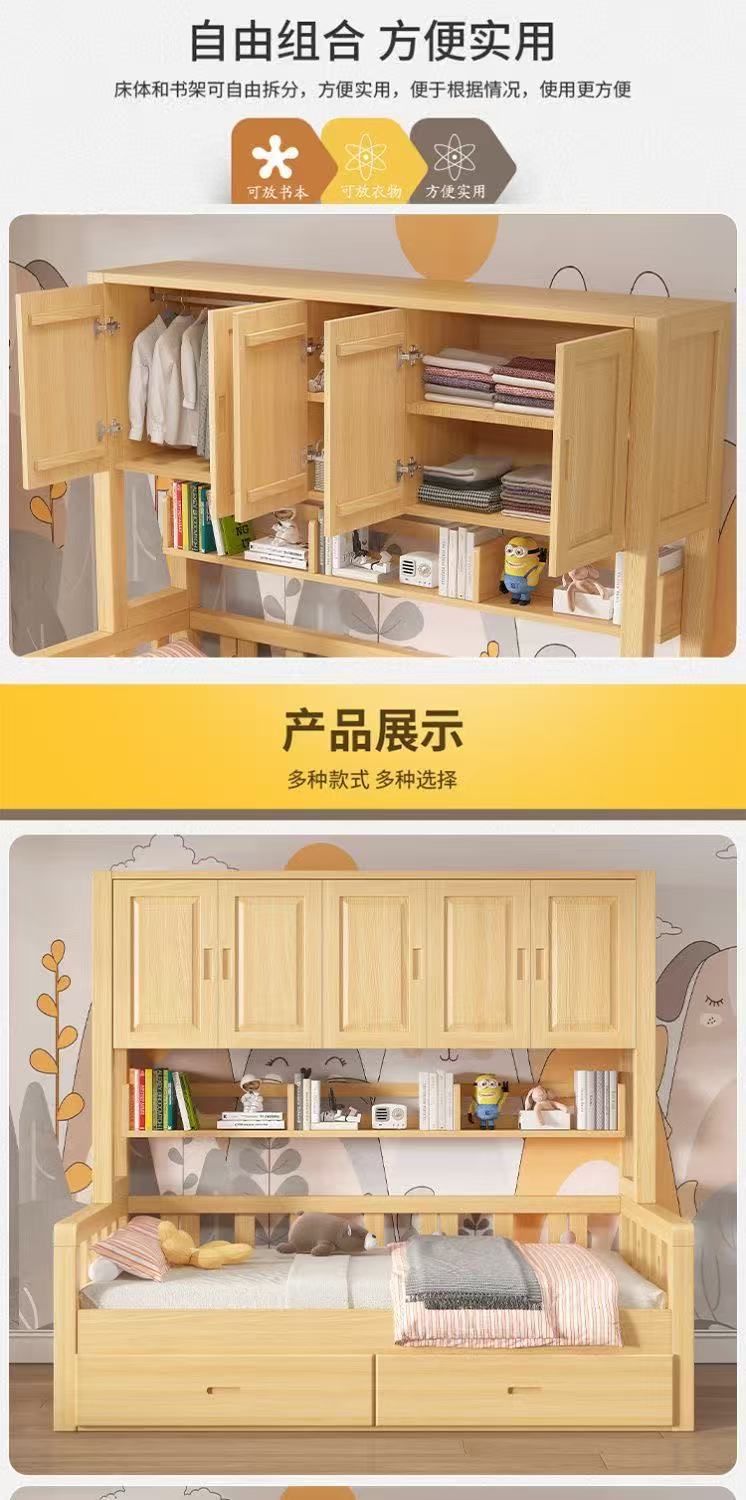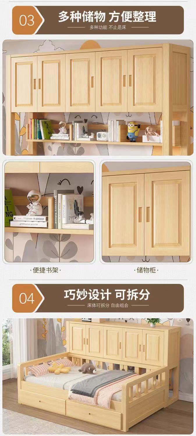 Односпальная кровать, современная многофункциональная комбинация для хранения, детский шкаф, встроенная кровать, массив дерева, маленькая квартира, татами