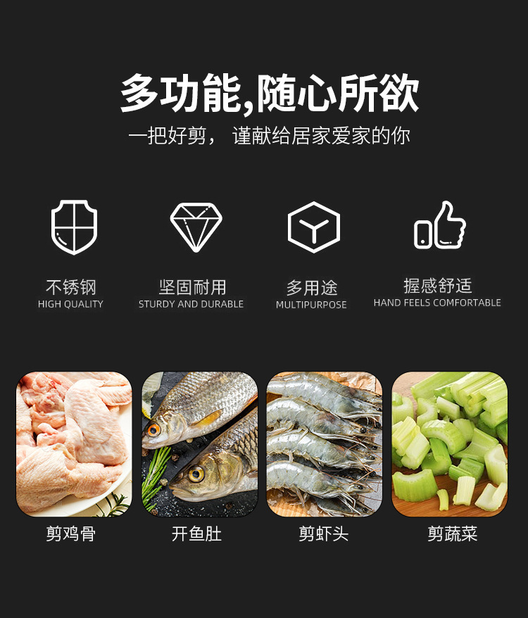 加厚不锈钢多功能厨房剪刀骨头食物家用鸡骨鸭骨剪刀工厂现货供应