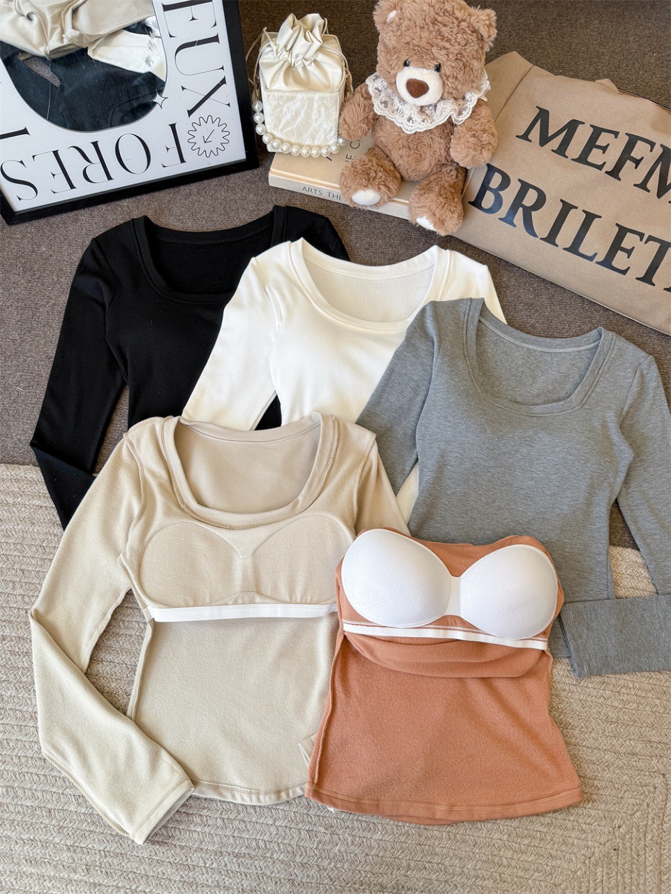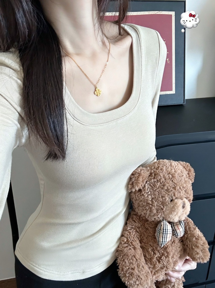 5202 # Женская термальная футболка с длинным рукавом и вставками для груди, облегающий базовый слой