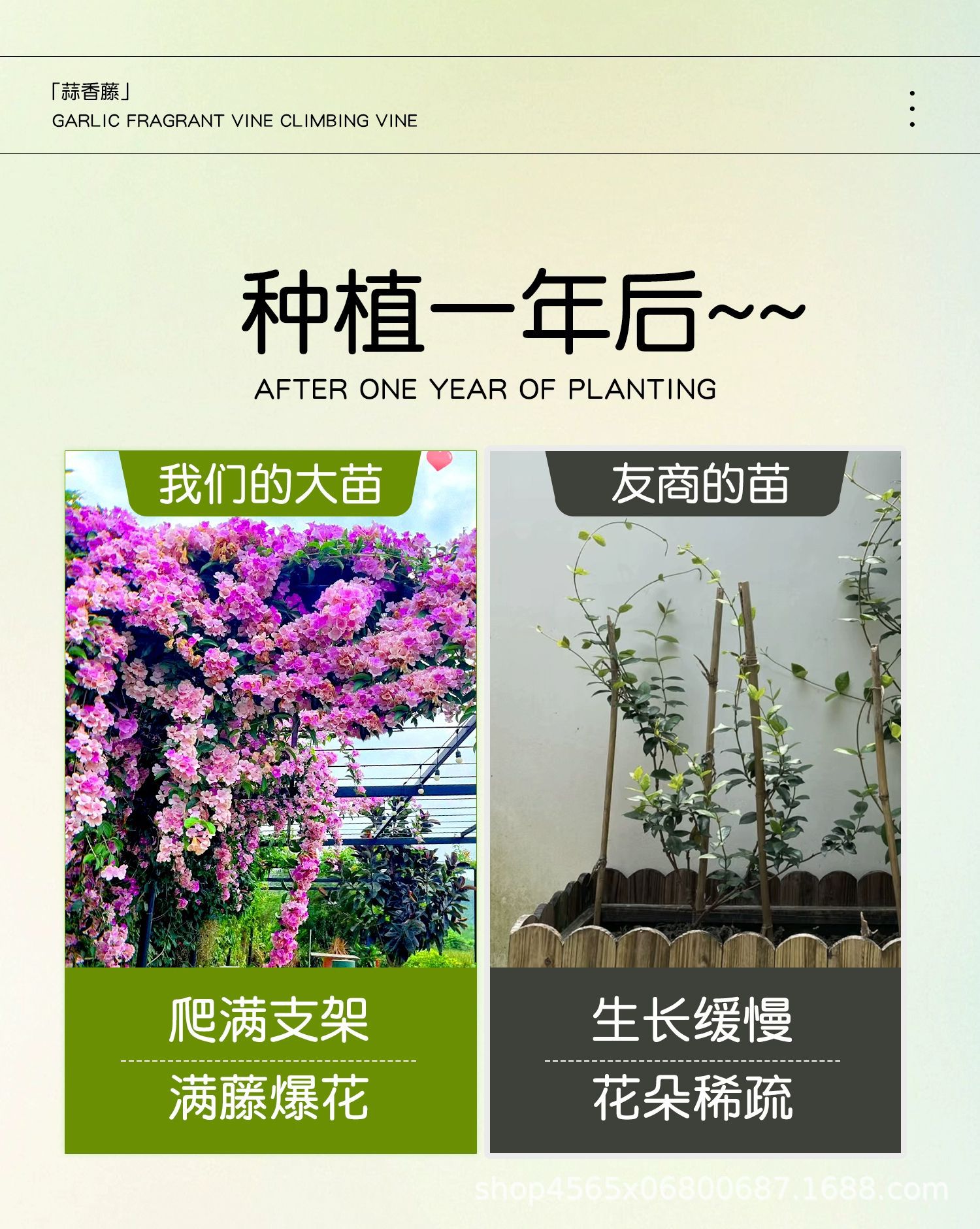 ![]() | [excellent product] garlic vine 65cm [5 plants] purple and pink two-color (shipped with flowers during flowering period) | ¥176.0 / ≈ 2 123 ₽ | 1000 | 6150766422585 | |