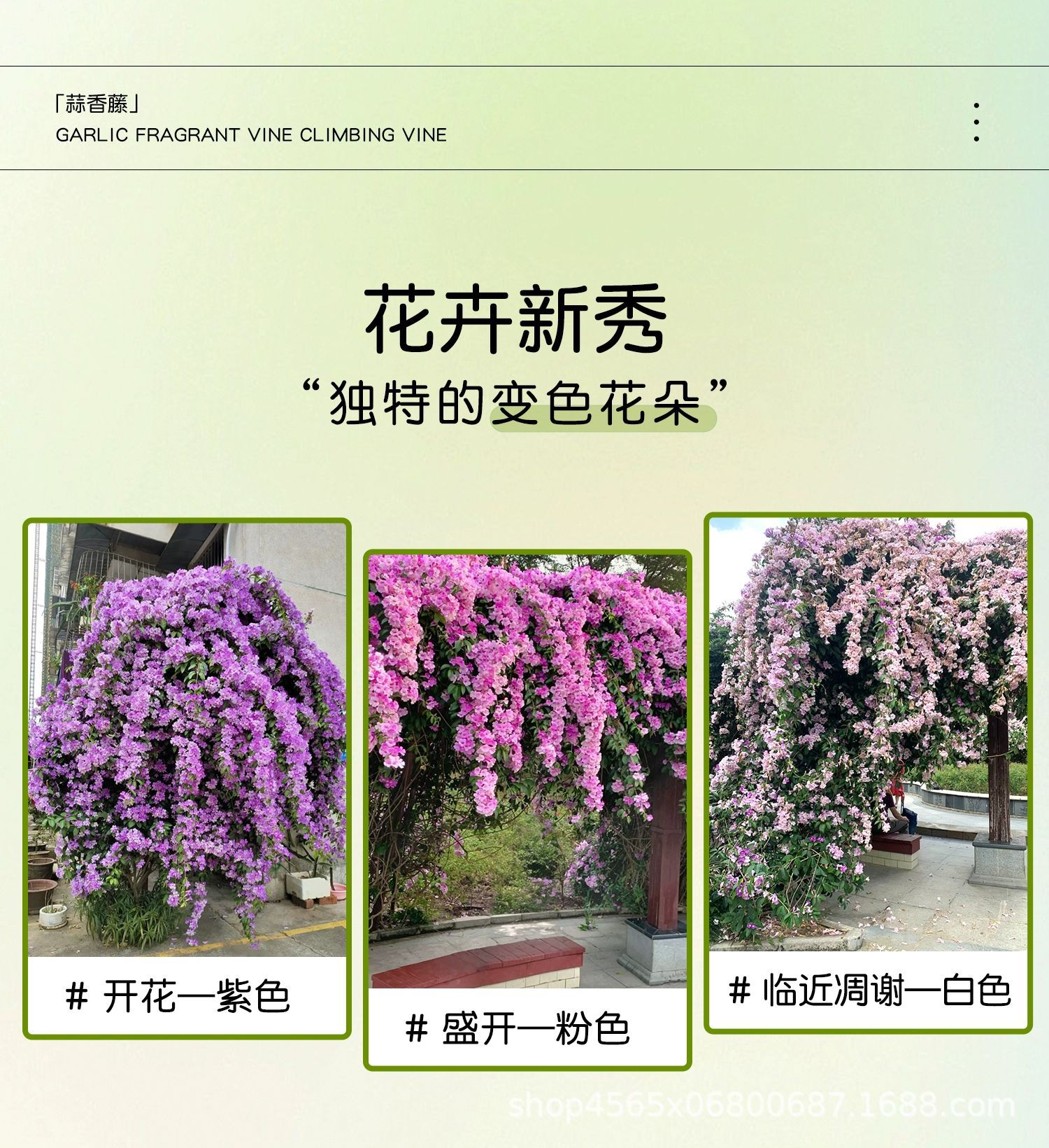 ![]() | [excellent product] garlic vine 85cm [3 plants] purple and pink two-color (shipped with flowers during flowering period) | ¥147.0 / ≈ 1 773 ₽ | 1000 | 6150766422583 | |