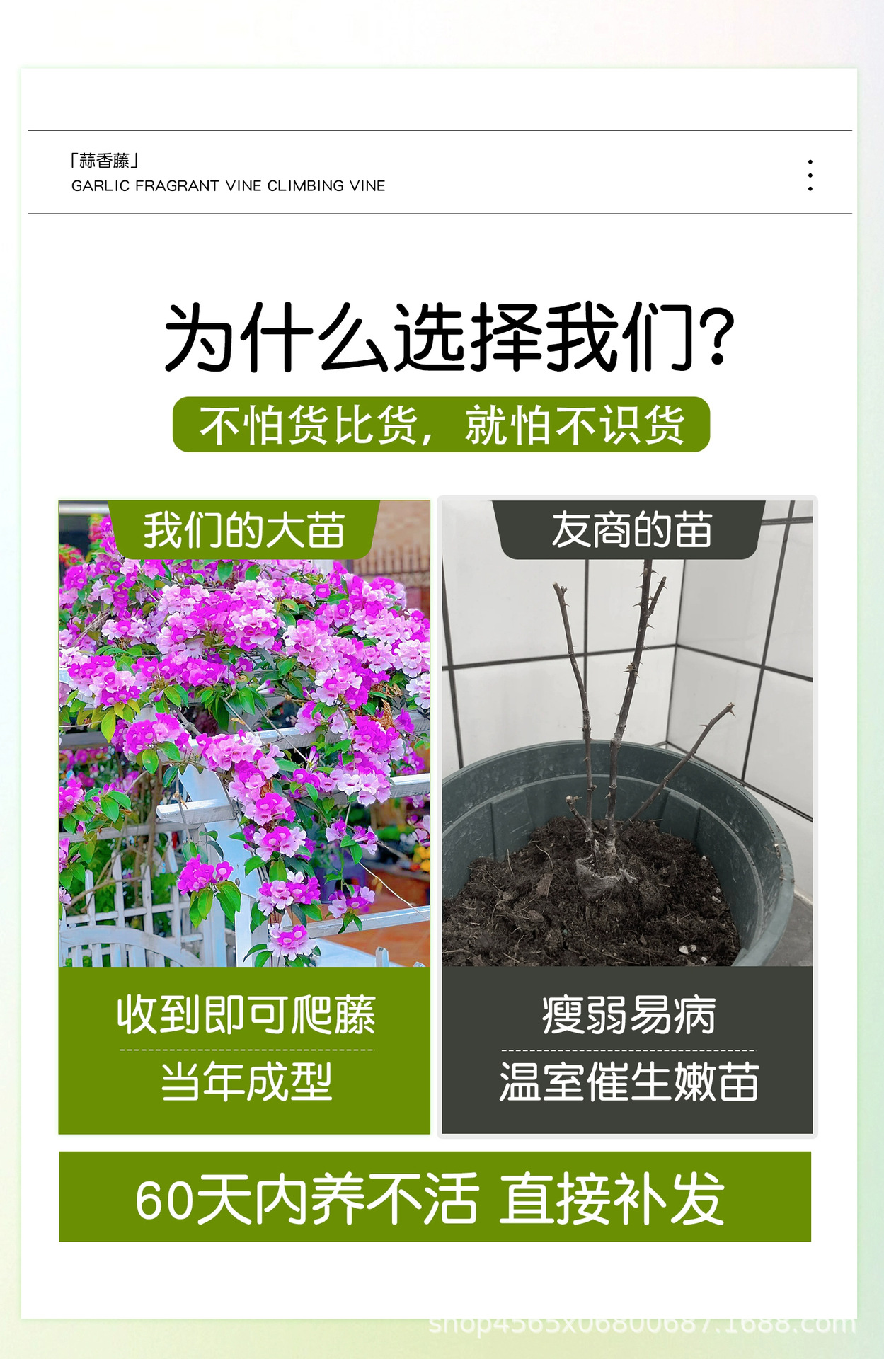 ![]() | [excellent product] garlic vine 55cm [5 plants] purple and pink two-color (shipped with flowers during flowering period) | ¥138.0 / ≈ 1 664 ₽ | 1000 | 6150766422584 | |