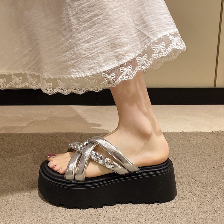 Сандалии с увеличением роста в китайском стиле с рифленым дизайном, модные, универсальные, с ринстоном, для женщин