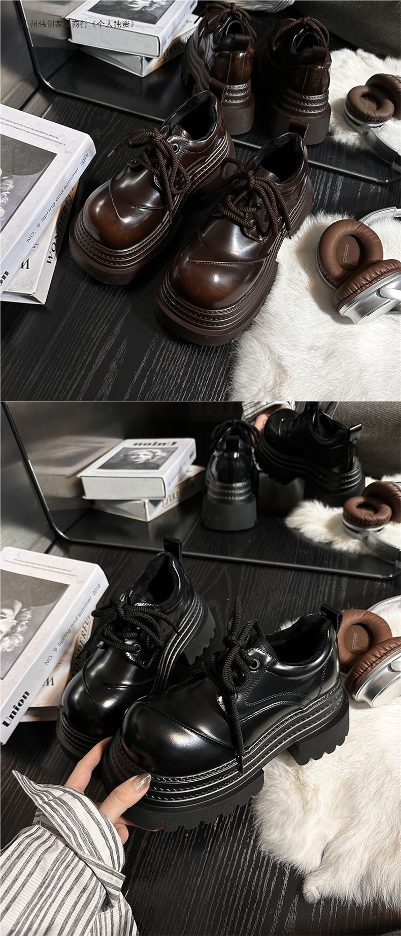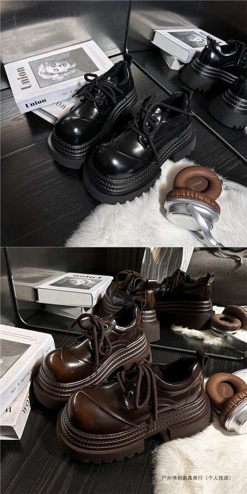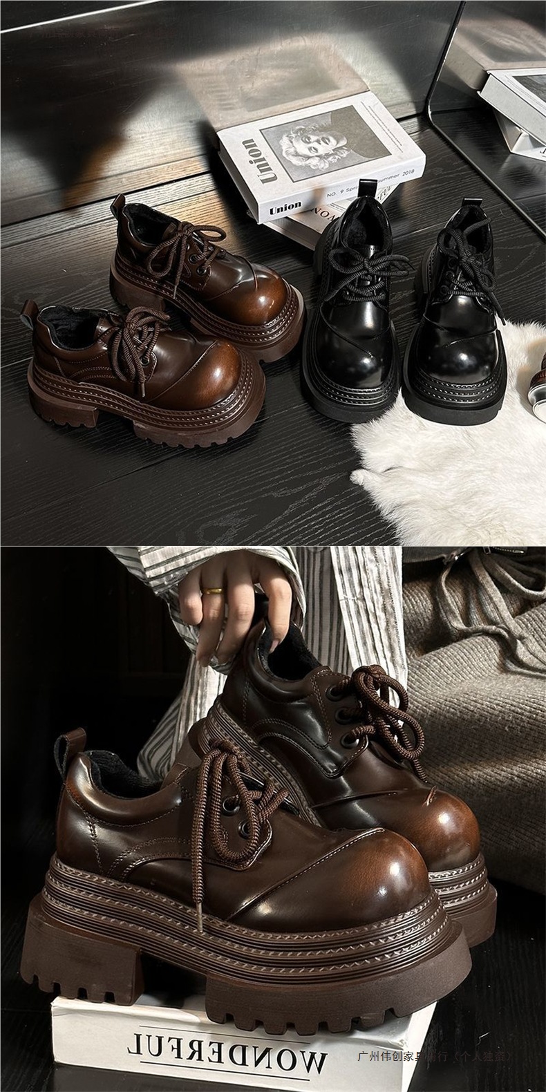 Европейские туфли из натуральной кожи с толстой подошвой для женщин, британский стиль, круглые носки, шнуровка, маленькие увеличивающие рост лоферы, плоские