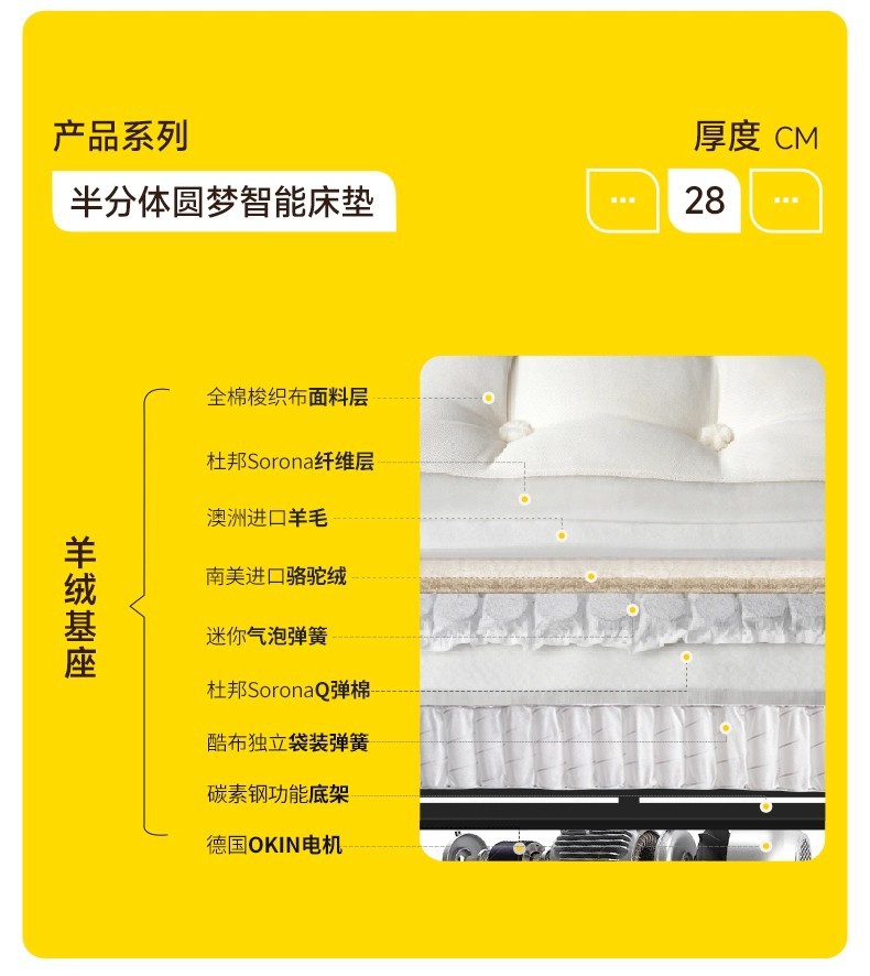 ![]() | 2000mm*2000mm | Yuanmeng cashmere base semi-separable mattress [wireless remote control + app control + okin voice + vibration massage + sleep monitoring] | ¥13299.0 / ≈ 160 194 ₽ | 200 | 5987673677722 | |
