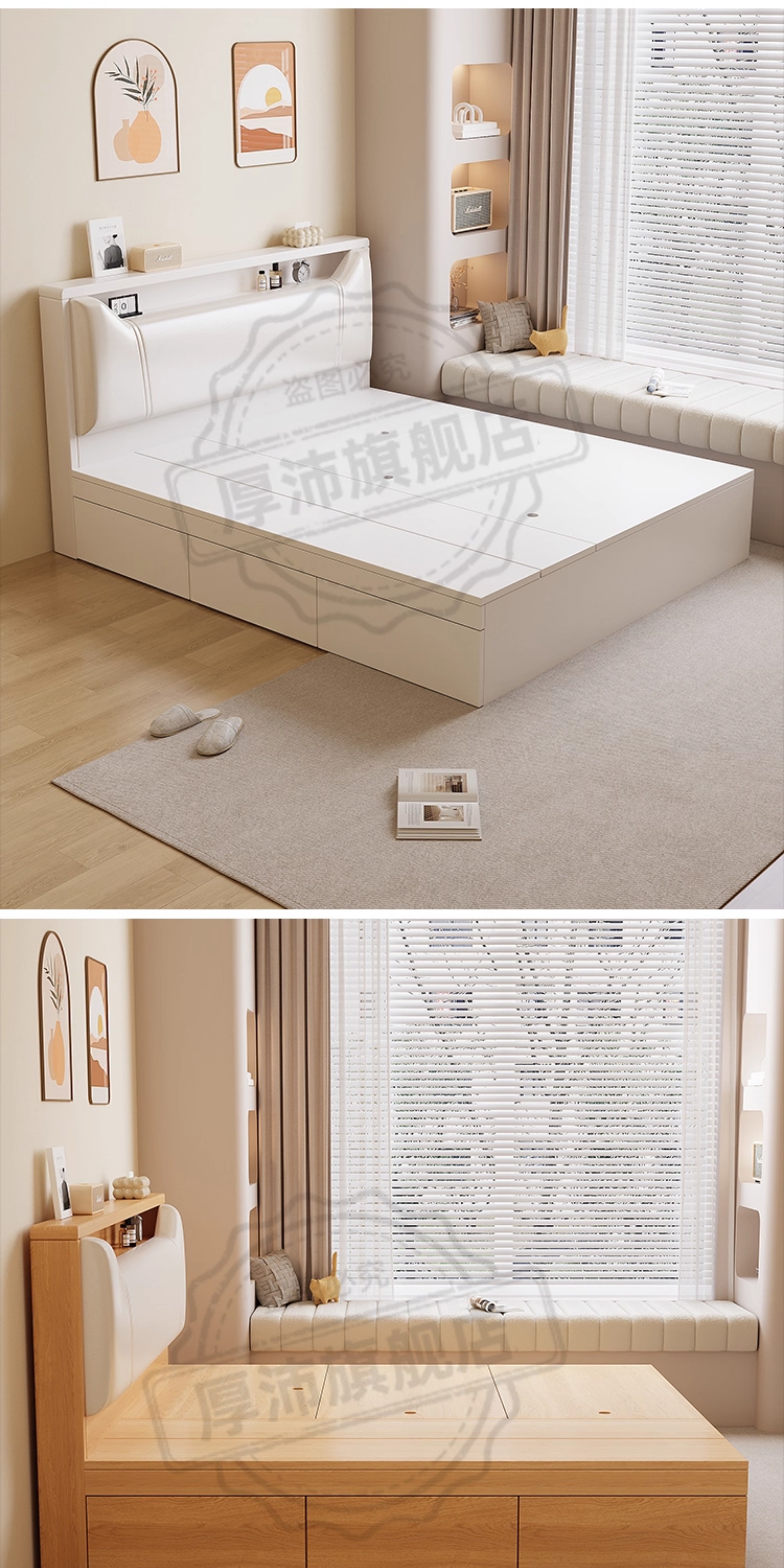 Кровать из массива дерева, татами, настраиваемая, для маленькой квартиры, настраиваемая 1.35м, кровать для хранения, высокая односпальная и двуспальная кровать