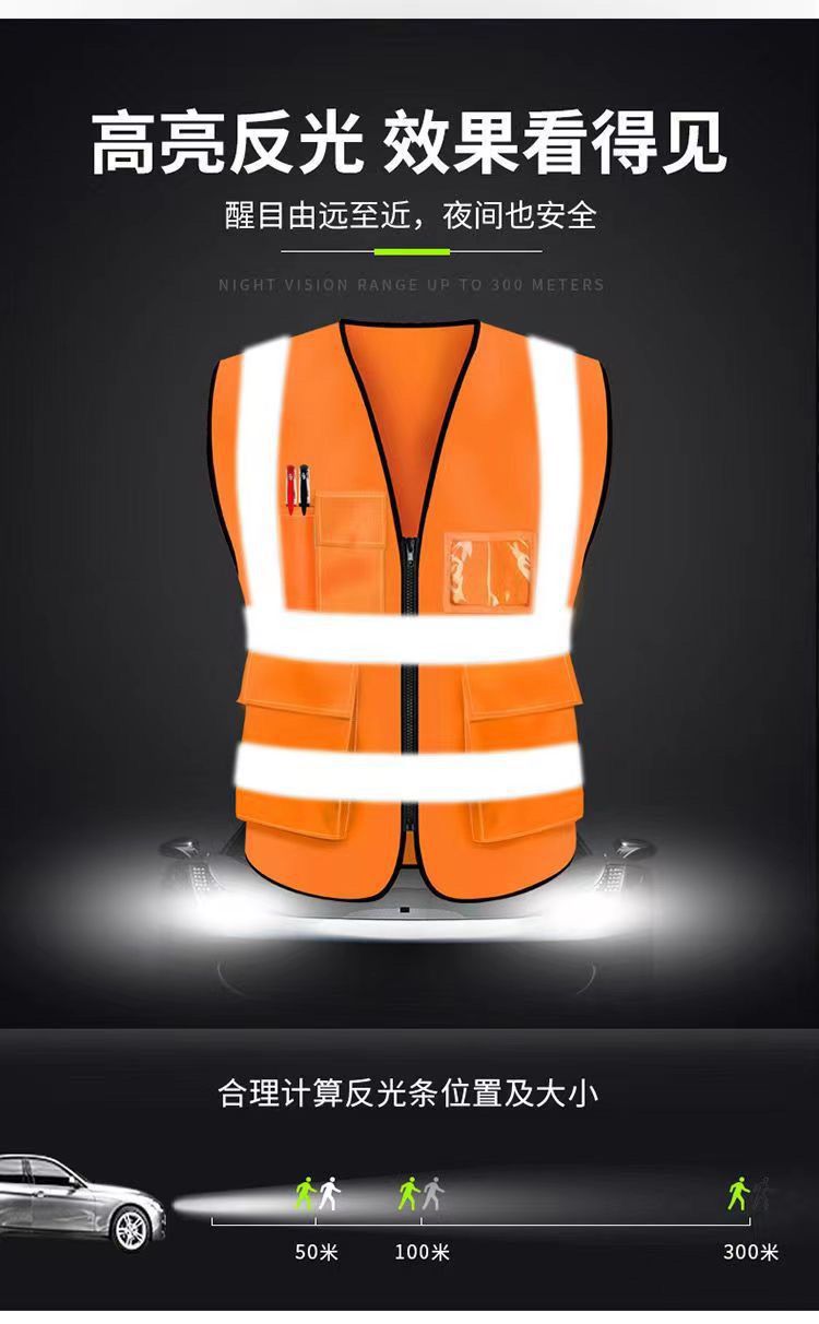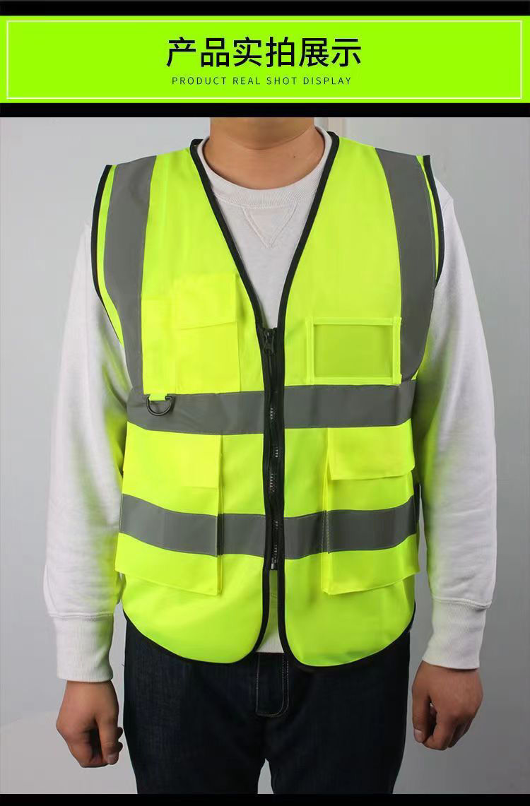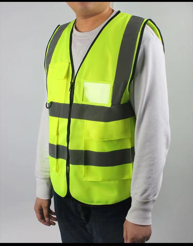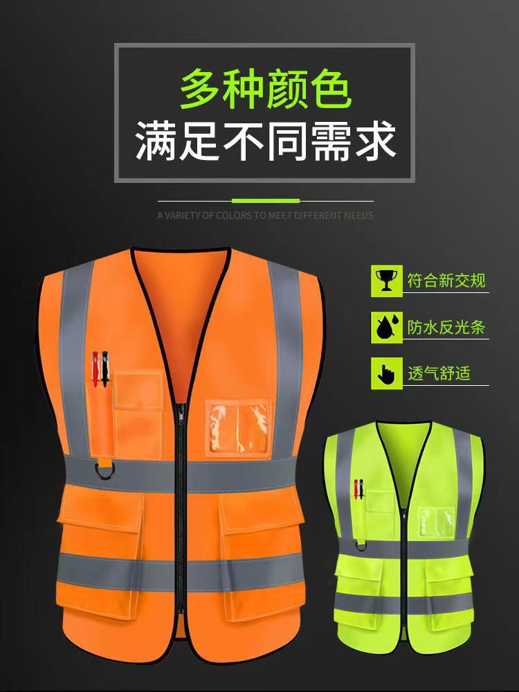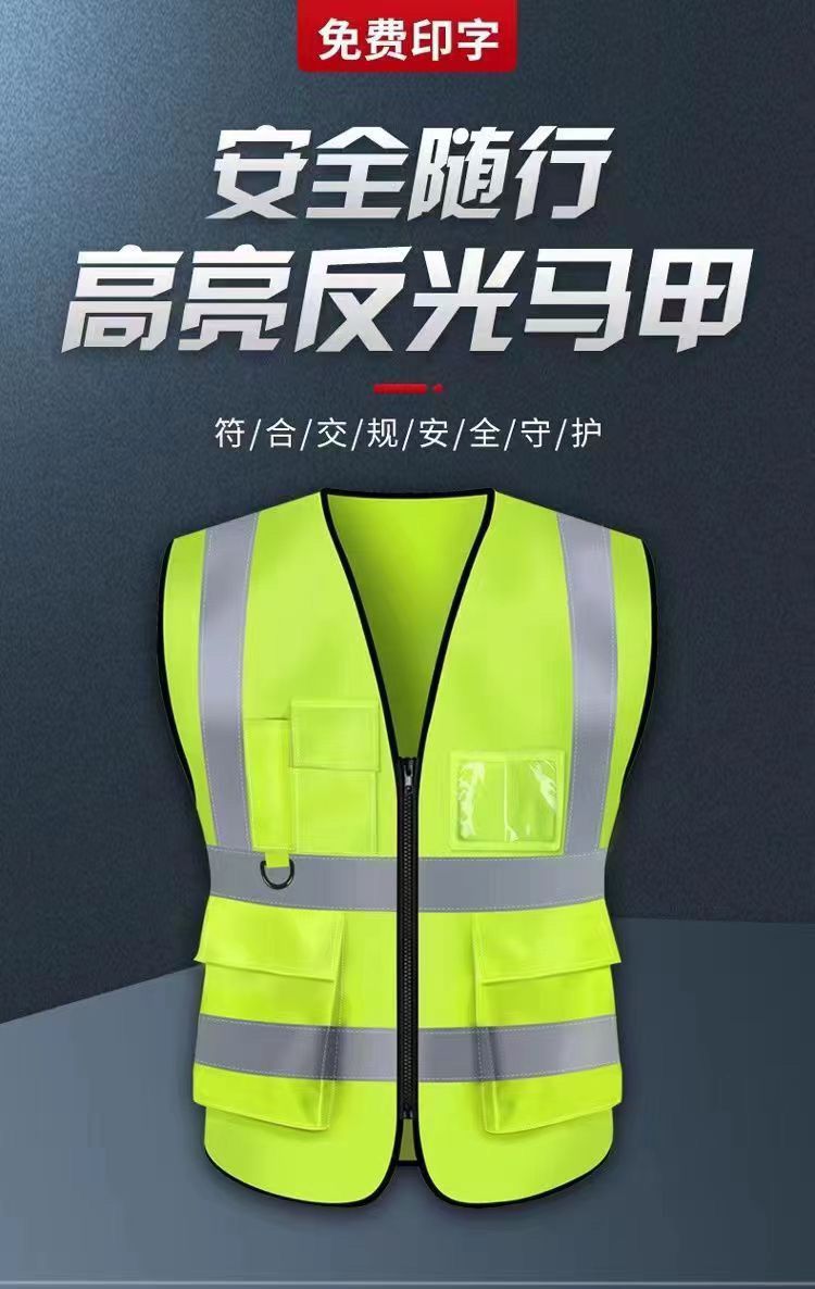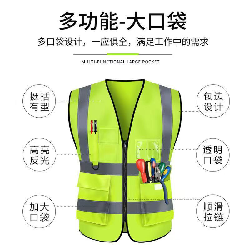 Светоотражающий жилет с несколькими карманами для безопасности на строительных площадках, подходит для всех сезонов, с печатным текстом