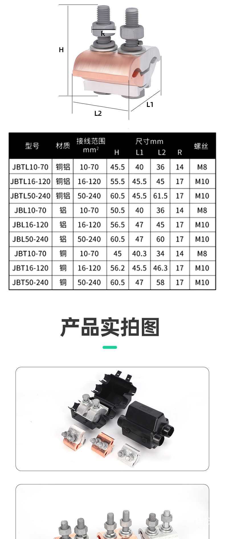 Специальный параллельный зажим для кабеля Jbtl, алюминиевый переходной зажим для кабеля, T-образный разделитель, параллельный зажим для кабеля