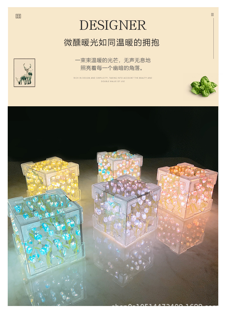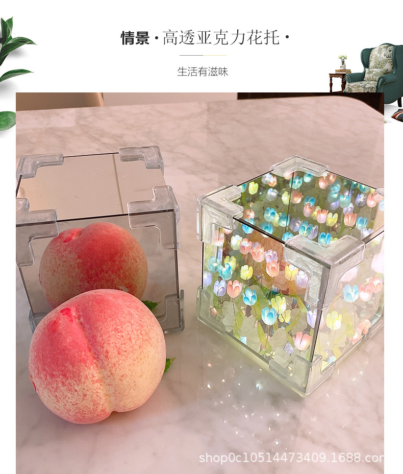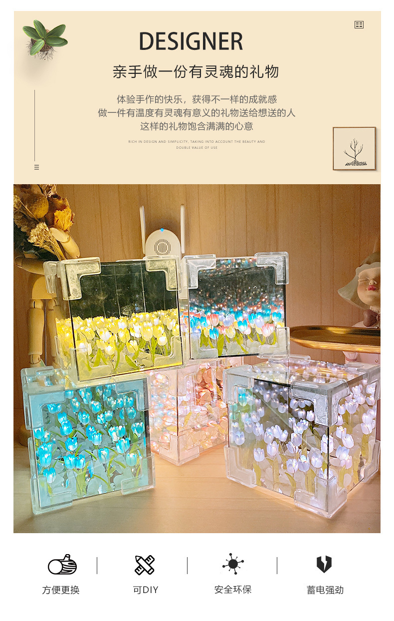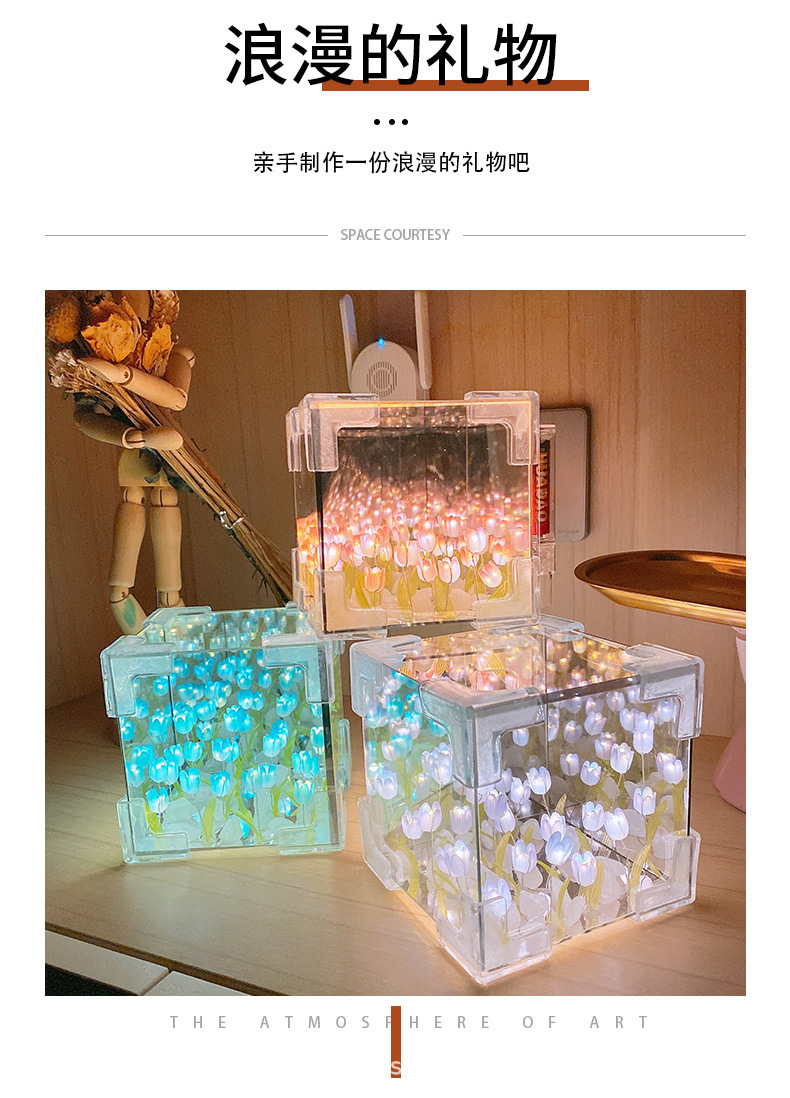 Подарок на китайский День святого Валентина, ночник в виде тюльпана, ручная работа, DIY, кубик Рубика, стереозеркало, креативный подарок для девушки или лучшего друга