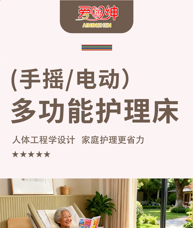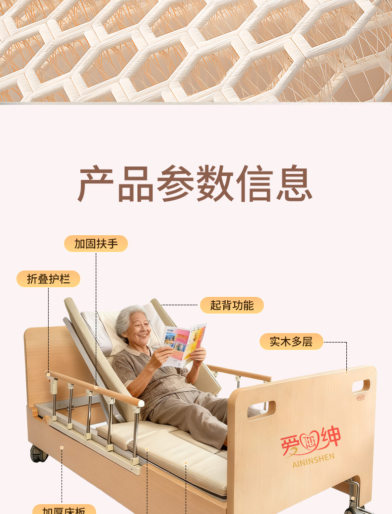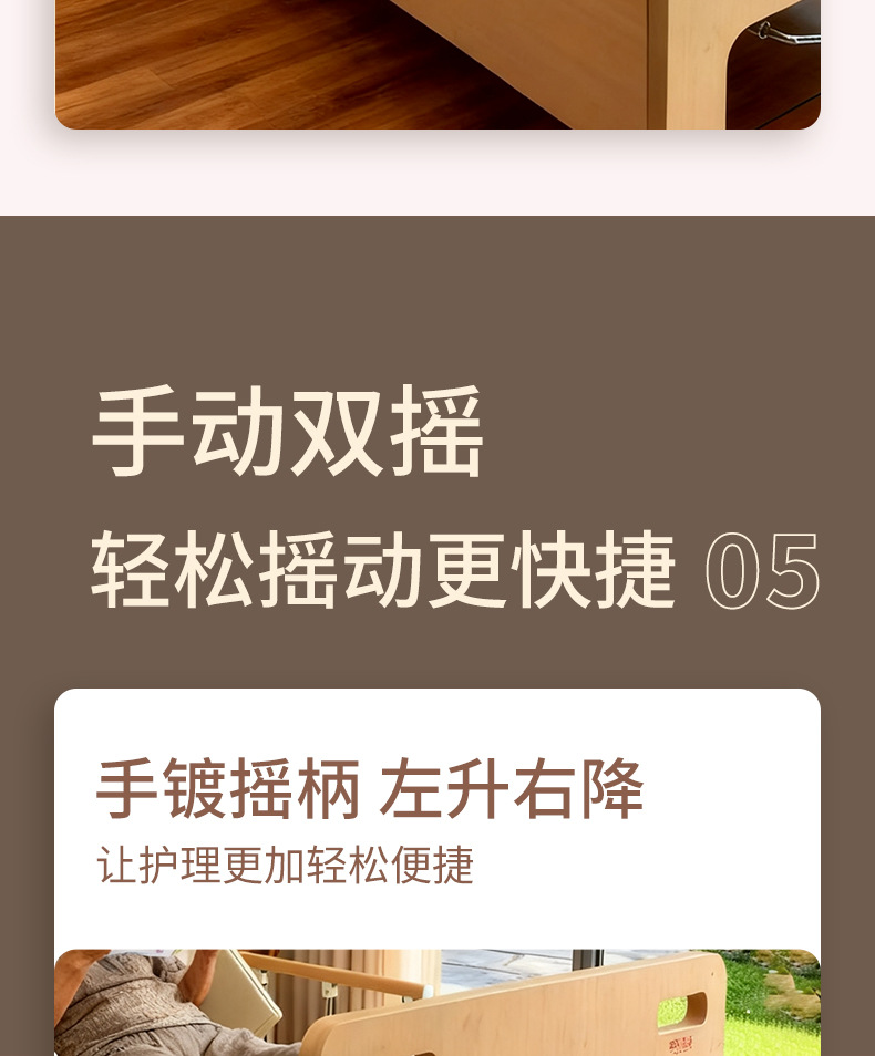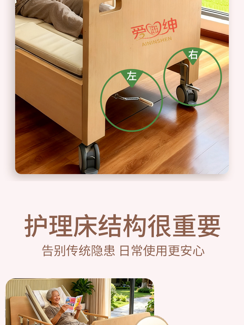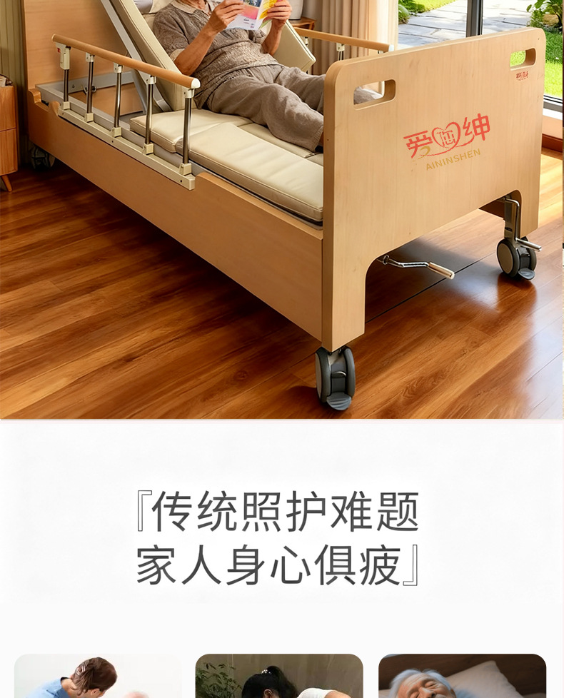 Ручная медсестринская кровать Aiyushen для пожилых, многофункциональная кровать с подъемом спины и ног, удобная кровать из массива дерева для пожилых
