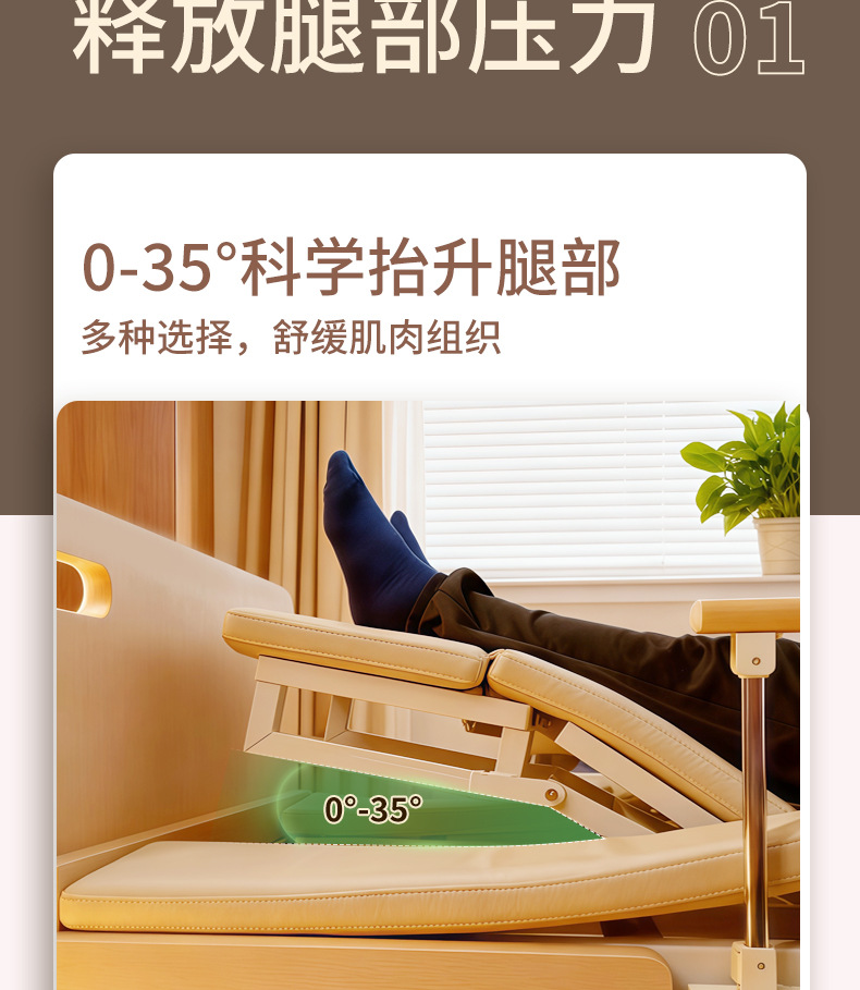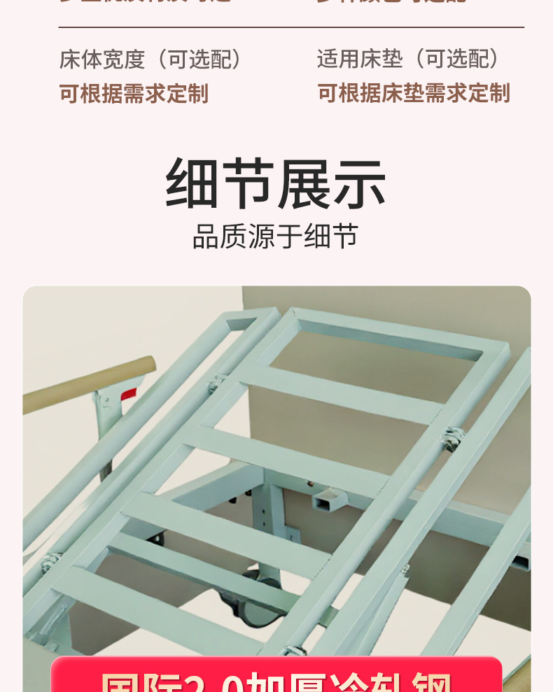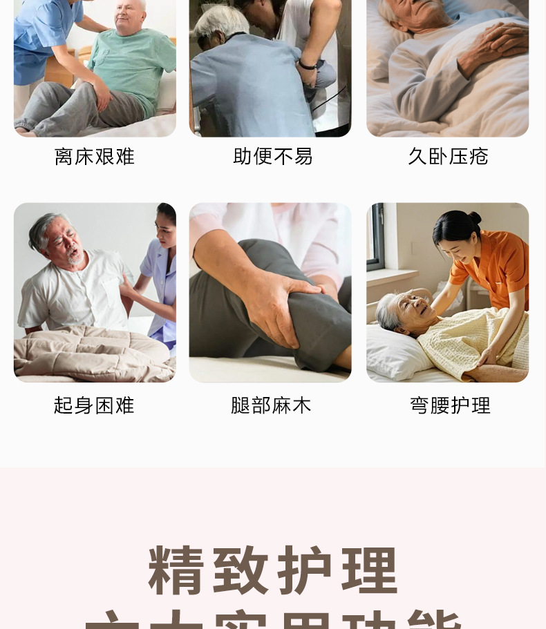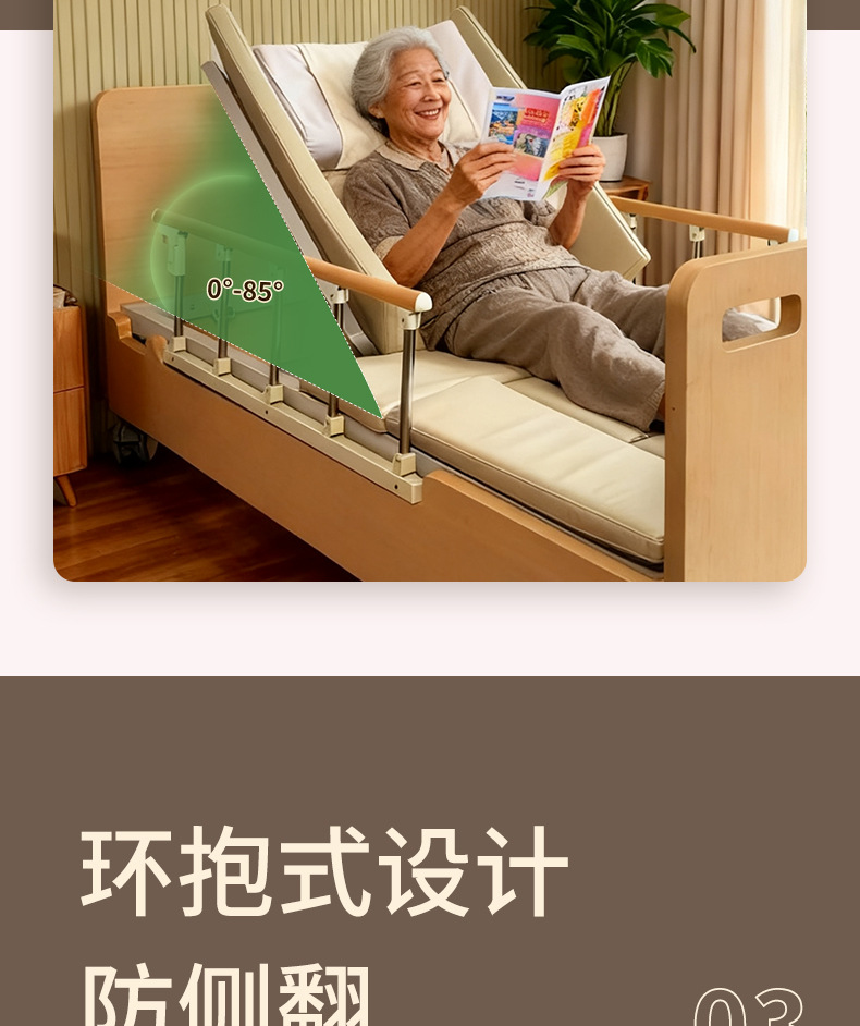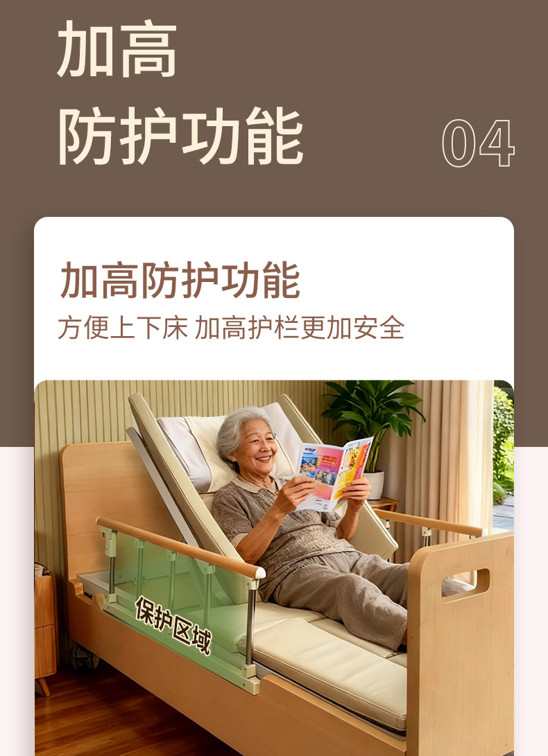 Ручная медсестринская кровать Aiyushen для пожилых, многофункциональная кровать с подъемом спины и ног, удобная кровать из массива дерева для пожилых