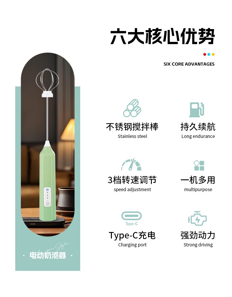 Ручной вспениватель молока Jl7601-3 электрический миксер для крема венчик многофункциональный
