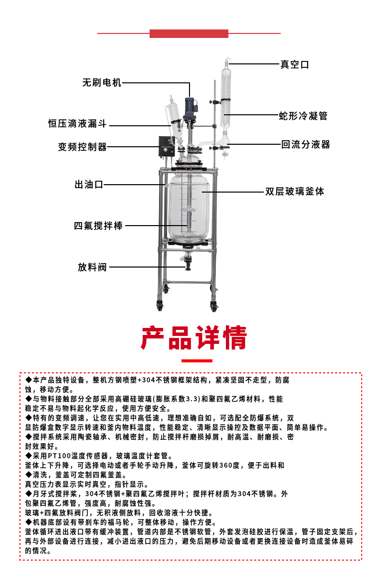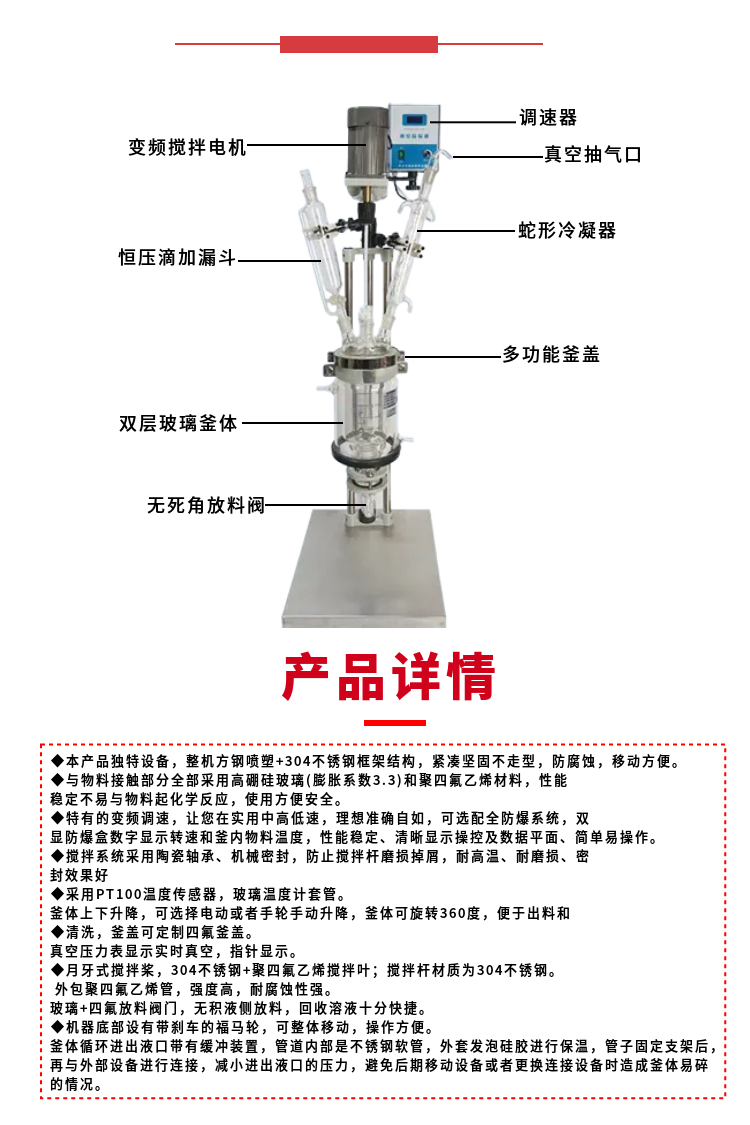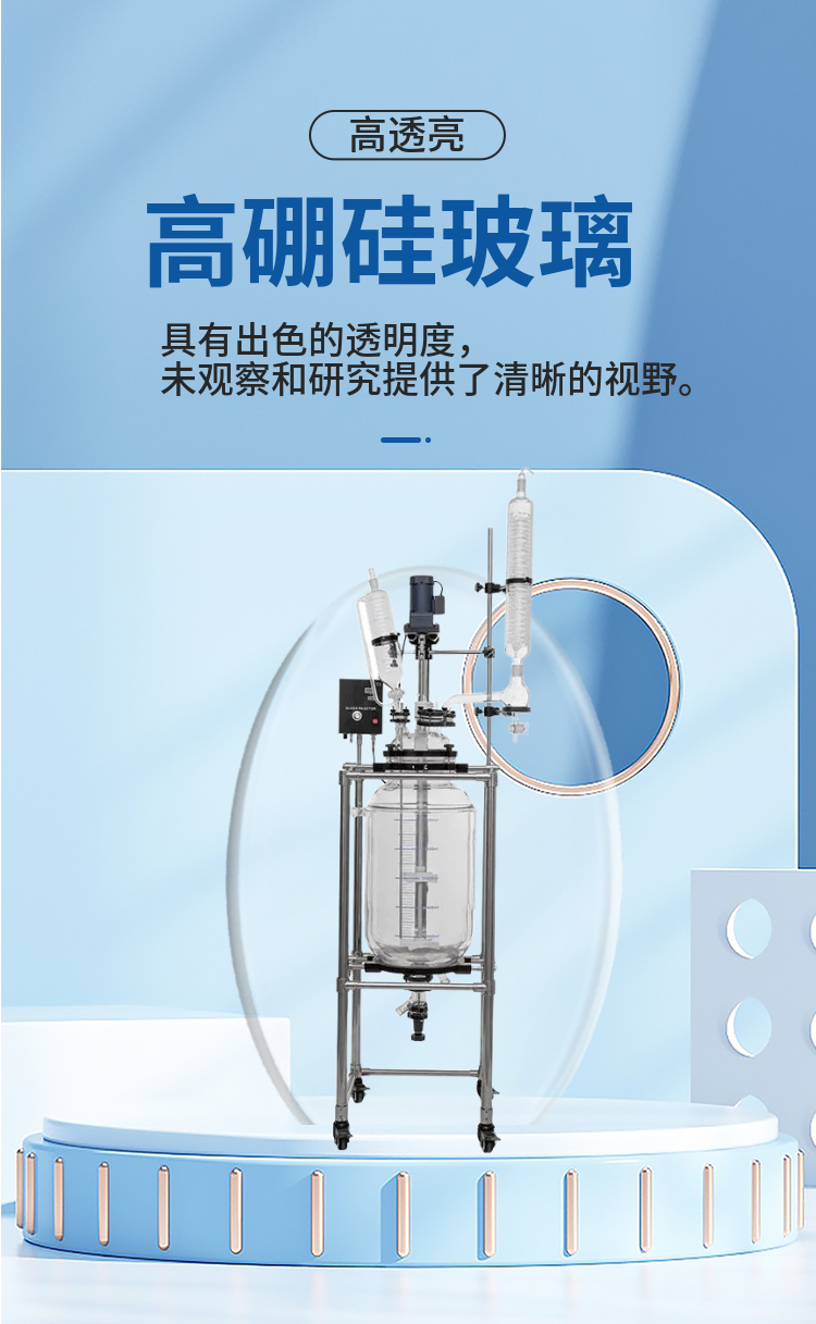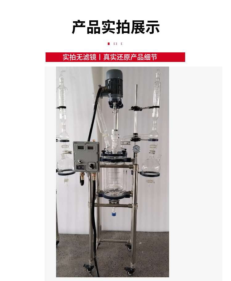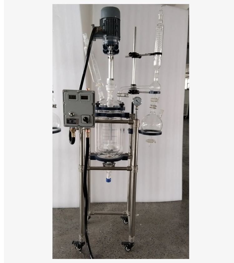 Лабораторный реактор с двойным стеклянным слоем, вакуумный дистилляционный реактор с подогревом и перемешиванием, настройка синтеза с постоянной температурой