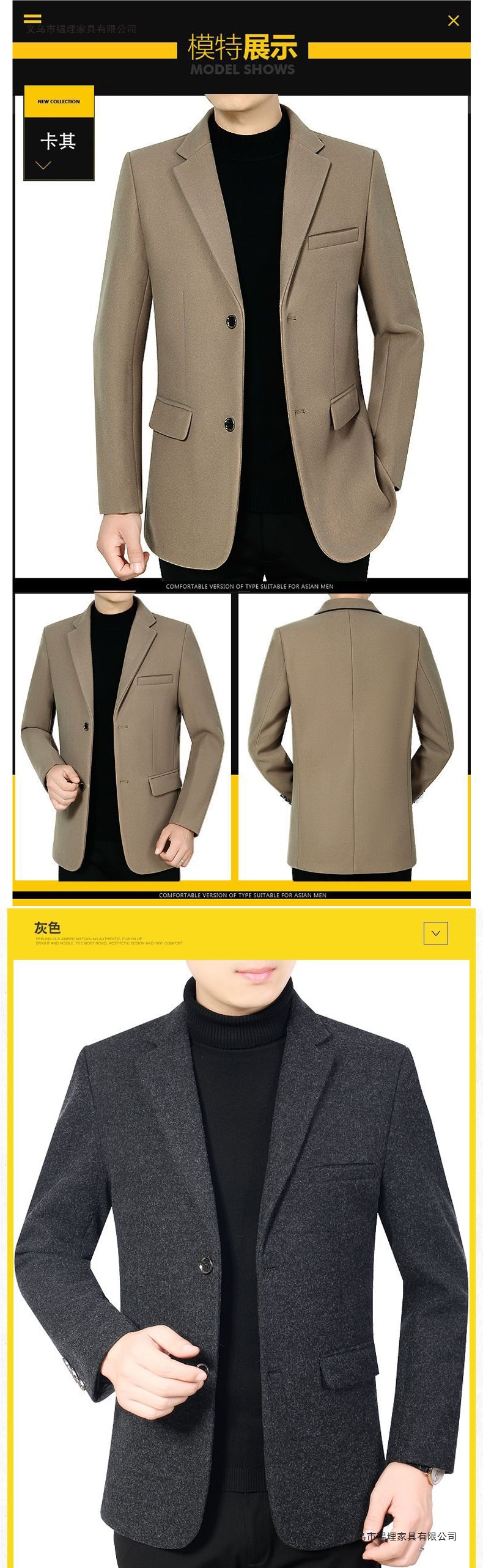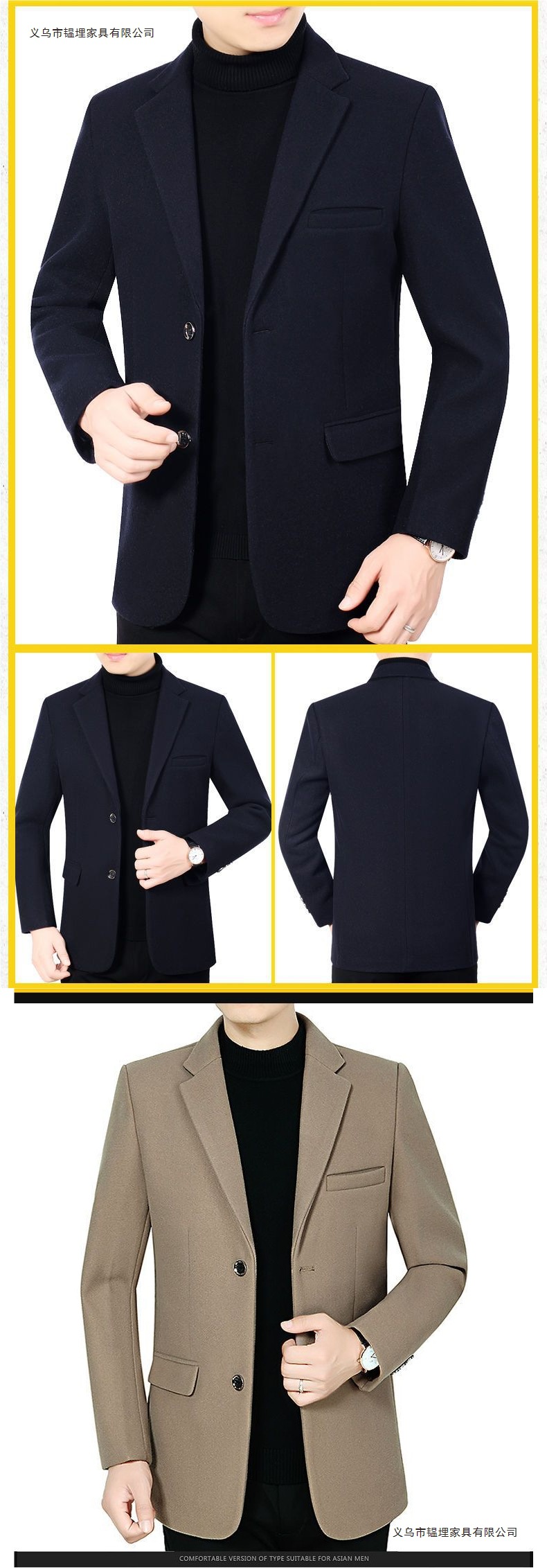 Осенний и Зимний Шершава Костюм Куртка для Мужчин, Короткий Узкий, Повседневная Куртка для Среднего Возраста, Однотонный Повседневный