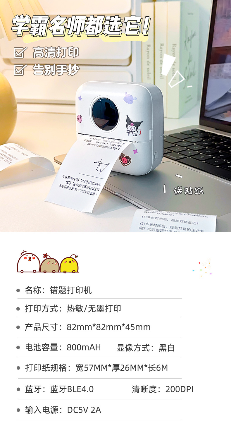 Принтер Неправильных Вопросов Портативный Принтер для Студентов Принтер для Домашних Заданий для Учеников Средней и Начальной Школы Сортировка Неправильных Вопросов Бесплатное Копирование Обучение