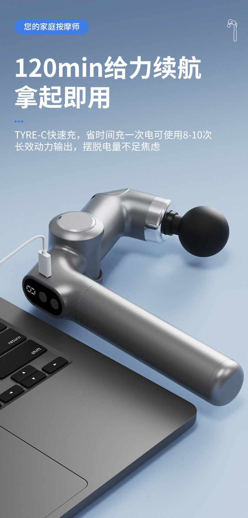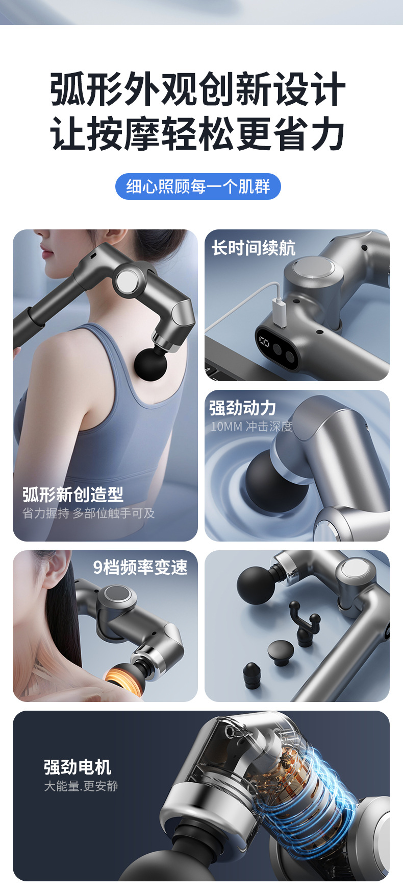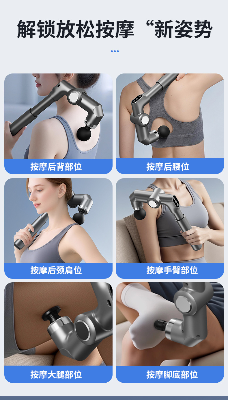Новый электрический массажный пистолет для фасции, складной телескопический массажный молоток, высокочастотная вибрация для глубокого расслабления мышц