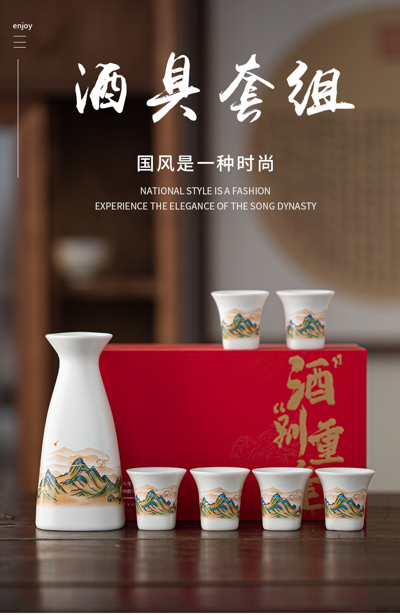 Новый ретро набор керамических винных принадлежностей Qianli Jiangshan, маленький бокал для вина, домашний диспенсер для китайского алкоголя