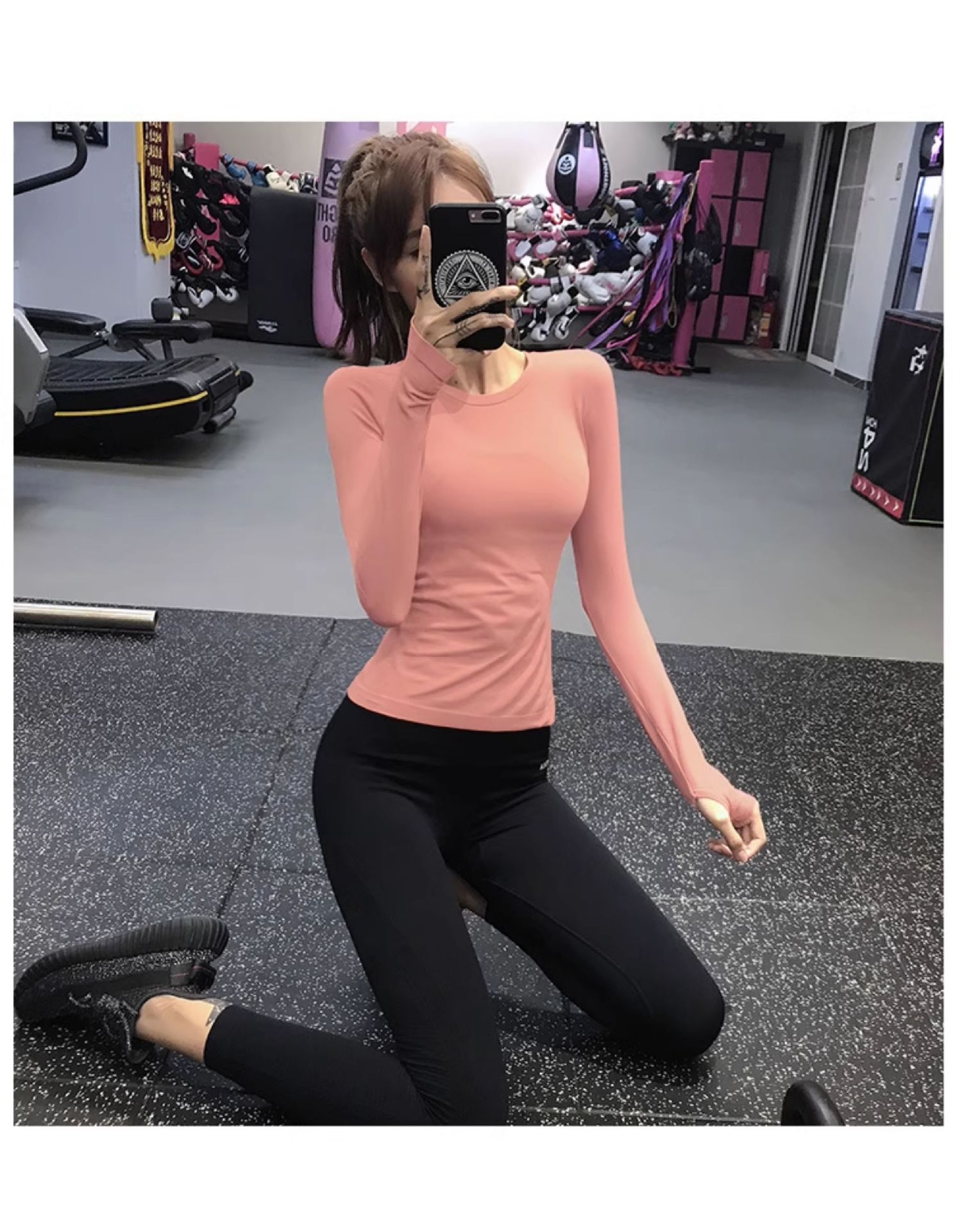 Новая осенняя облегающая одежда для фитнеса для женщин, длинные рукава, спортивные леггинсы