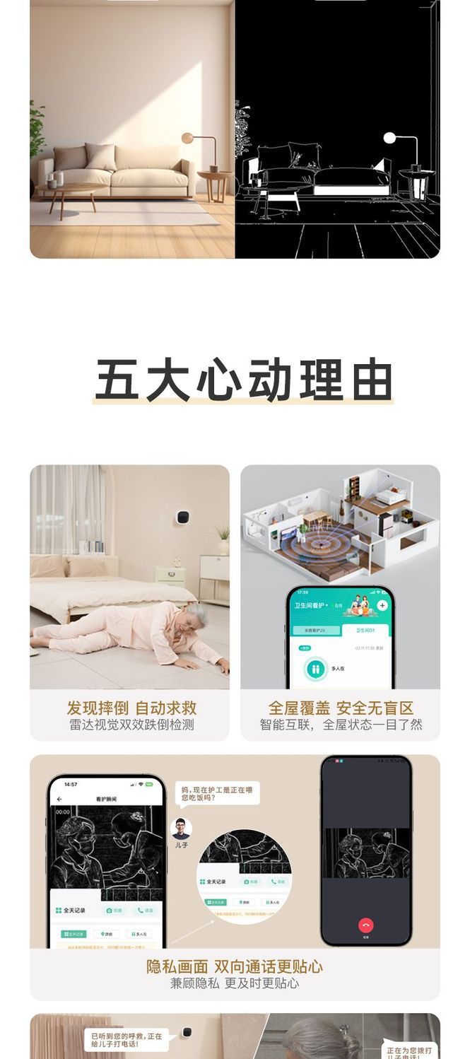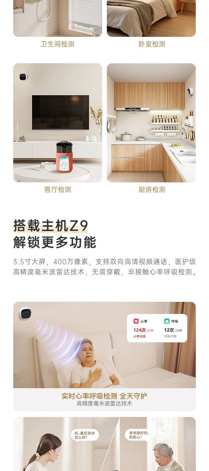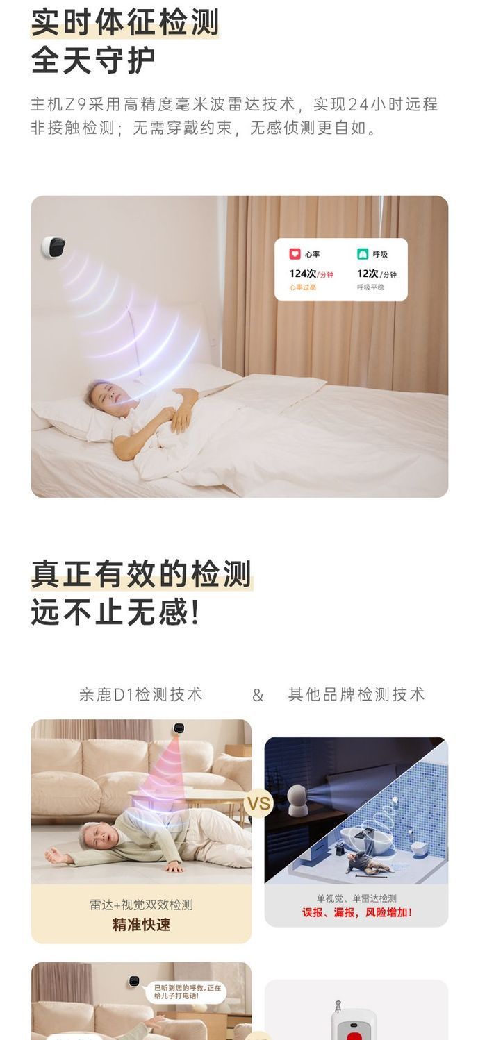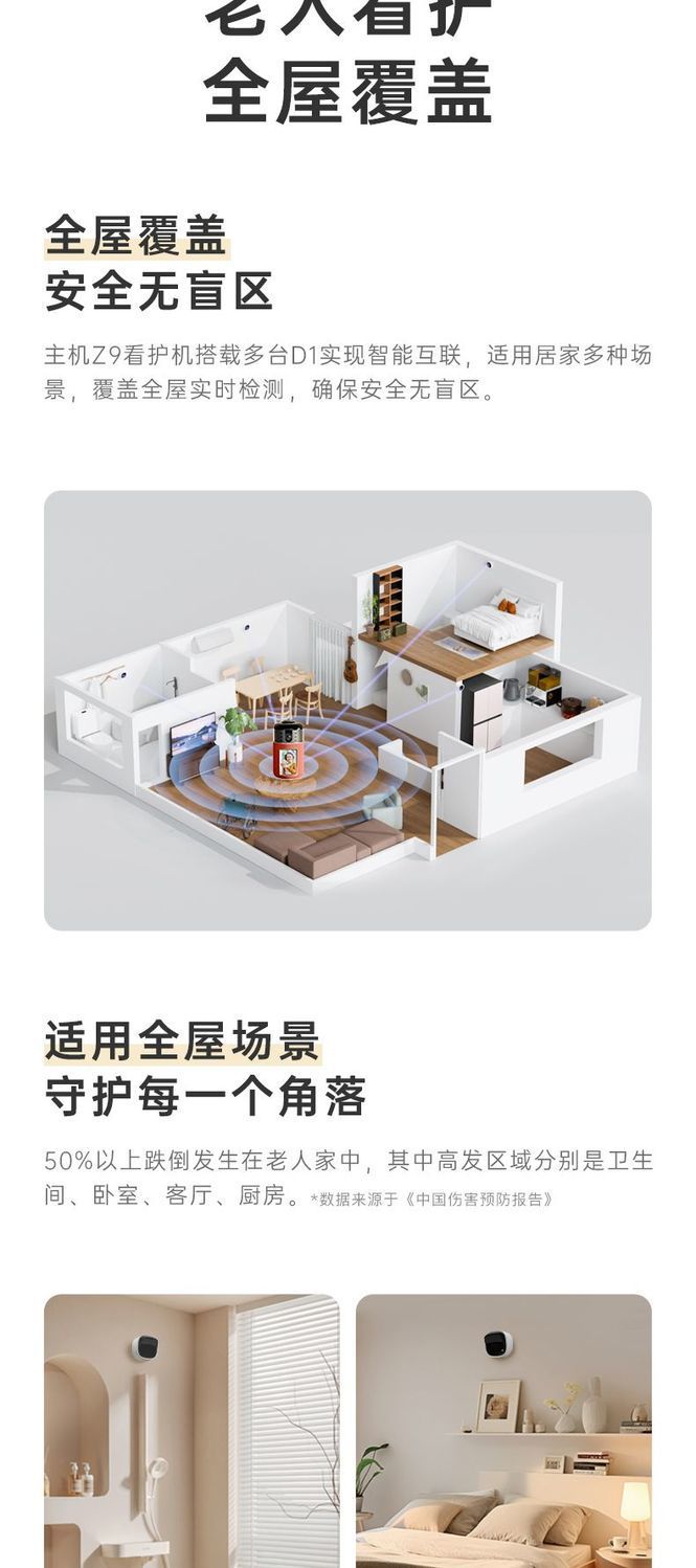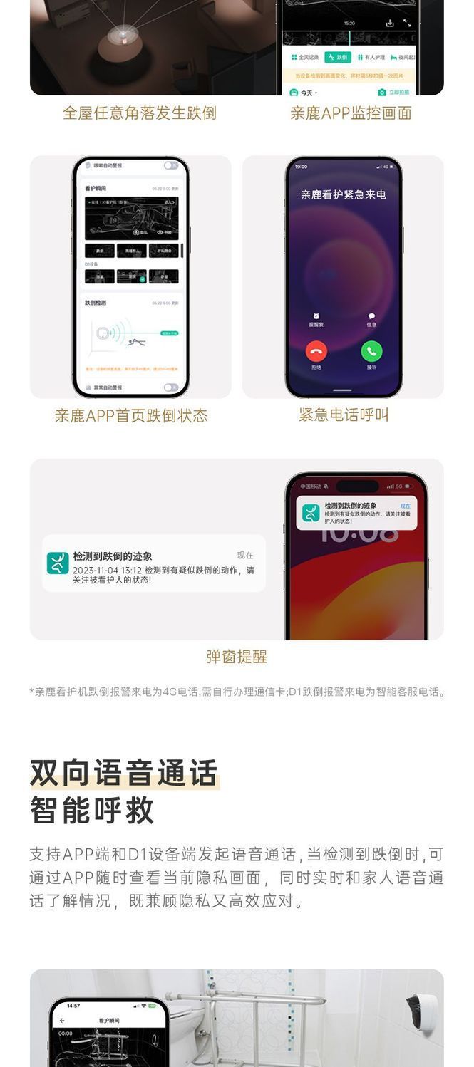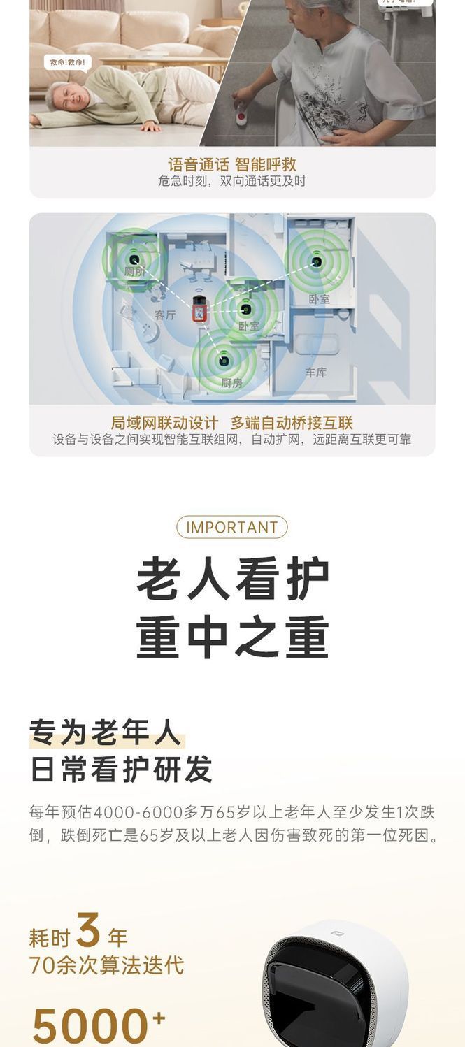 Qinlu D1 машина для ухода за пожилыми людьми, внутренняя домашняя камера, возможность голосового вызова, удаленный мониторинг, обнаружение падений, радар