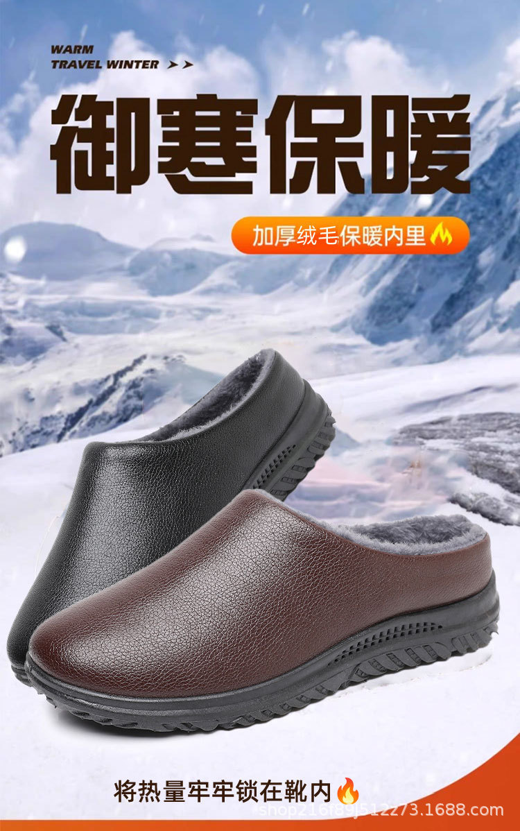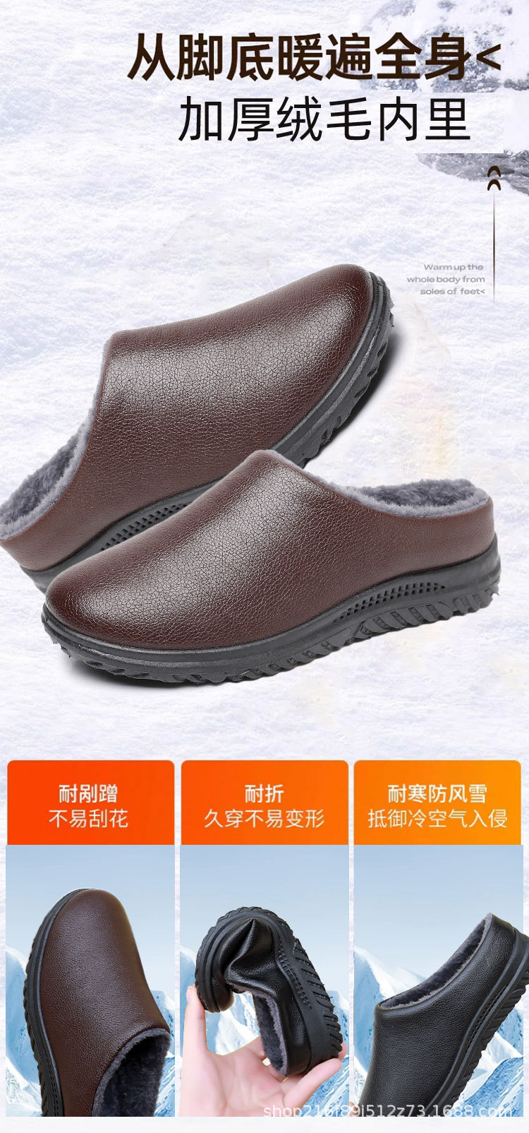 Хлопковые тапочки для мужчин, зимние, для дома и улицы, водонепроницаемые, с толстой подошвой