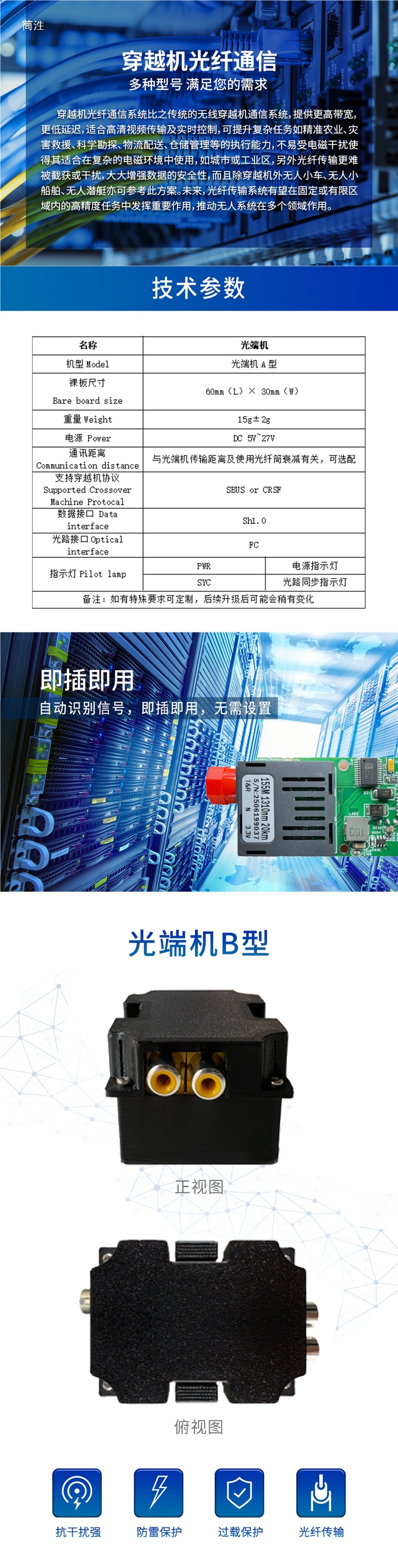 1-канальный видео/анти/оптический трансивер на оптическое волокно UAV оптический трансивер встроенный
