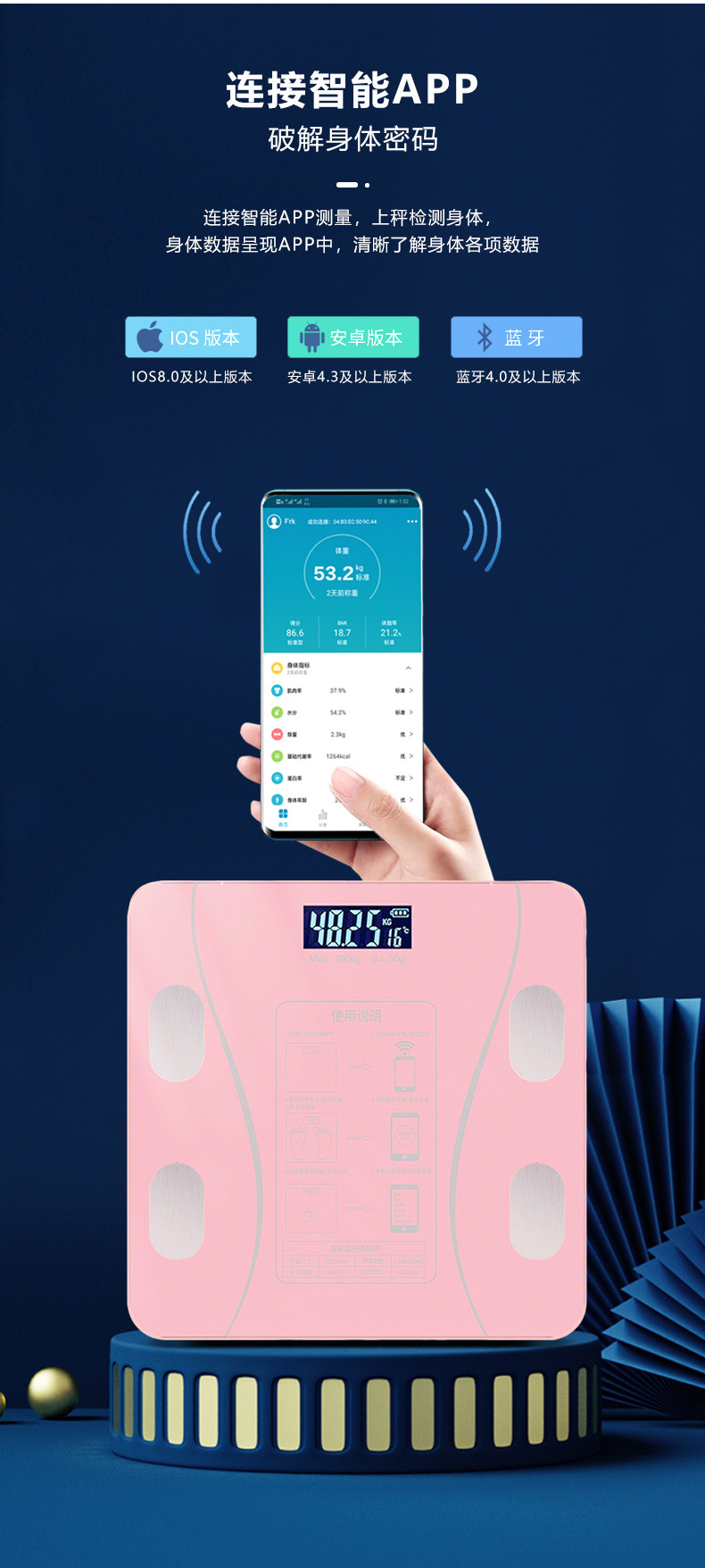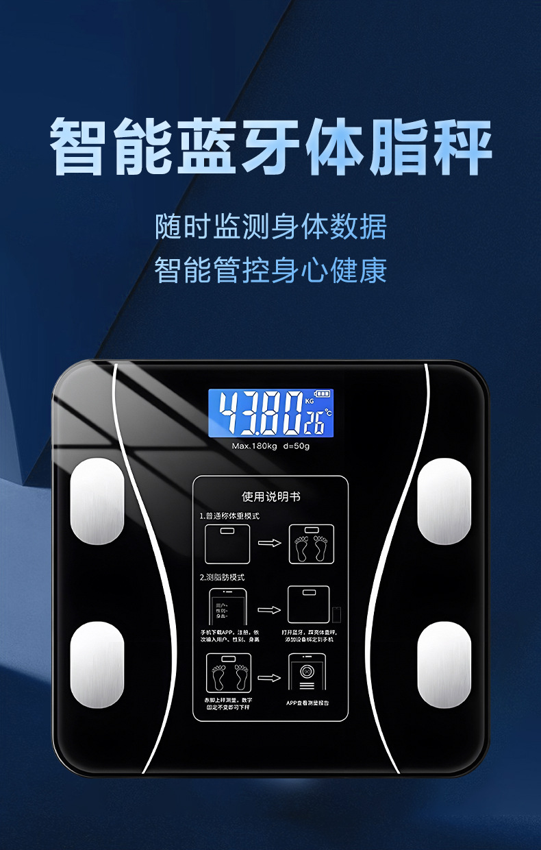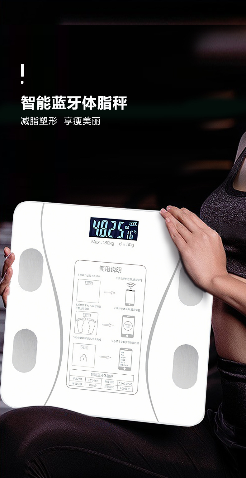 Оптовая продажа умных весов, весы для жира в теле, домашние кросс-бордовые электронные весы, USB зарядка, Bluetooth соединение