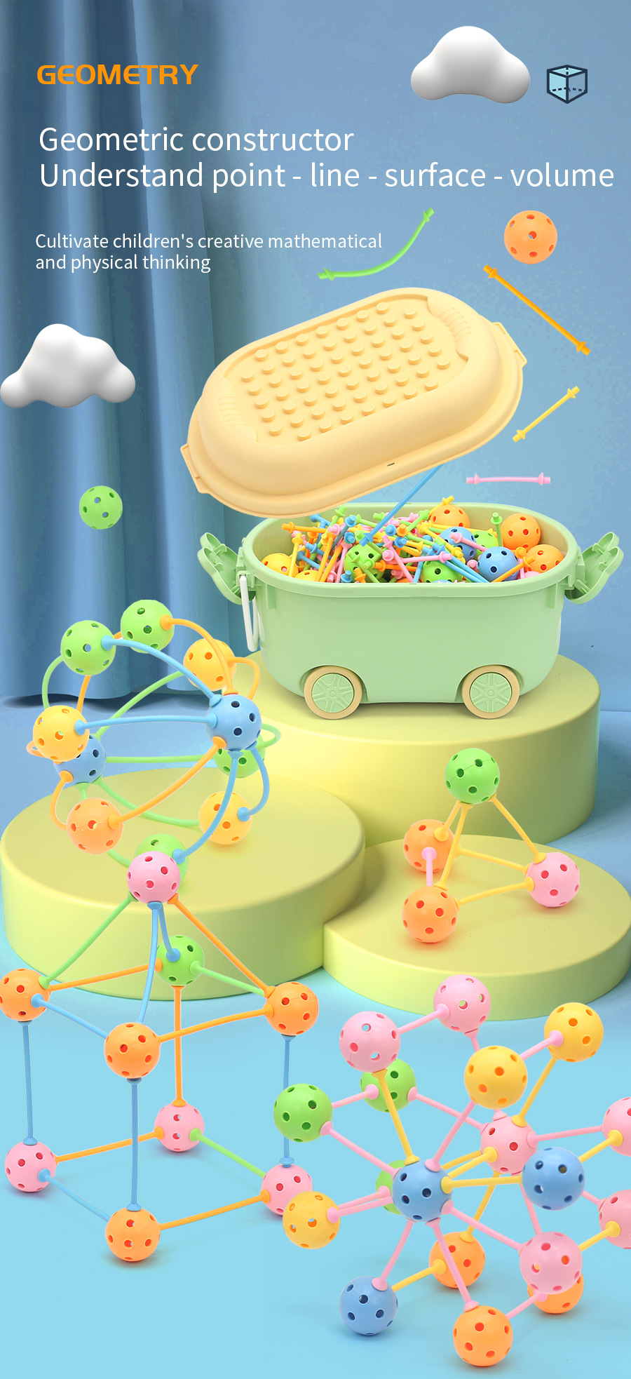 Детские 3D универсальные бусины, раннее обучение, большие сферические строительные блоки, детский сад, экологически чистые материалы