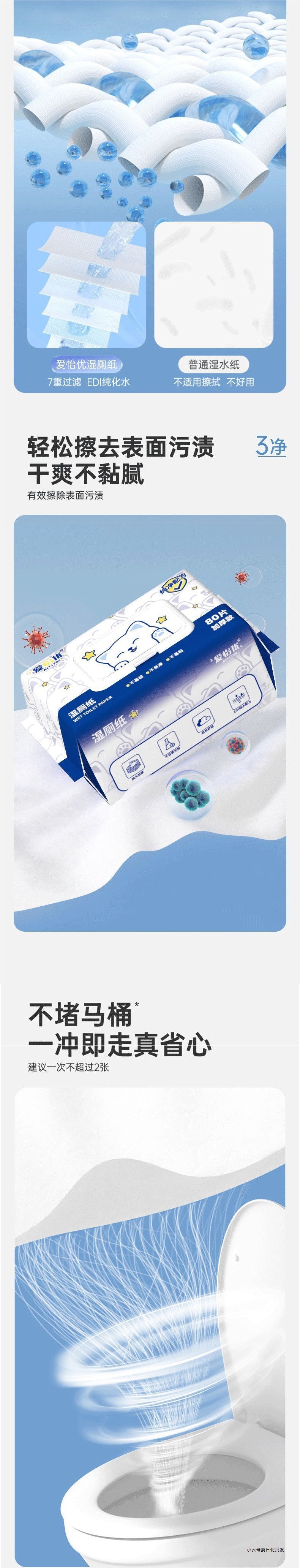Влажные туалетные салфетки медицинского класса Aiyiyou, большая упаковка 80 нажатий, семейный размер, женские влажные салфетки, можно смывать в унитаз