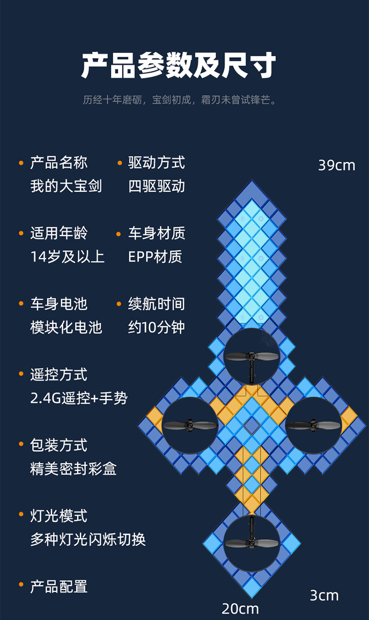![]() | [extra large size - fairy sword blue] dual remote control/brushless motor/various ways to play/cool lights/multiple speeds | Three sets of ling shi lithium batteries | ¥252.0 / ≈ 3 040 ₽ | 9999 | 6157635970219 | |