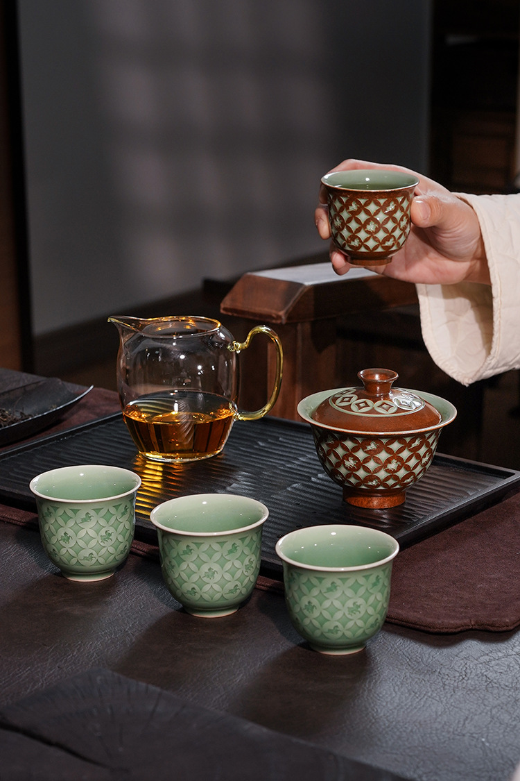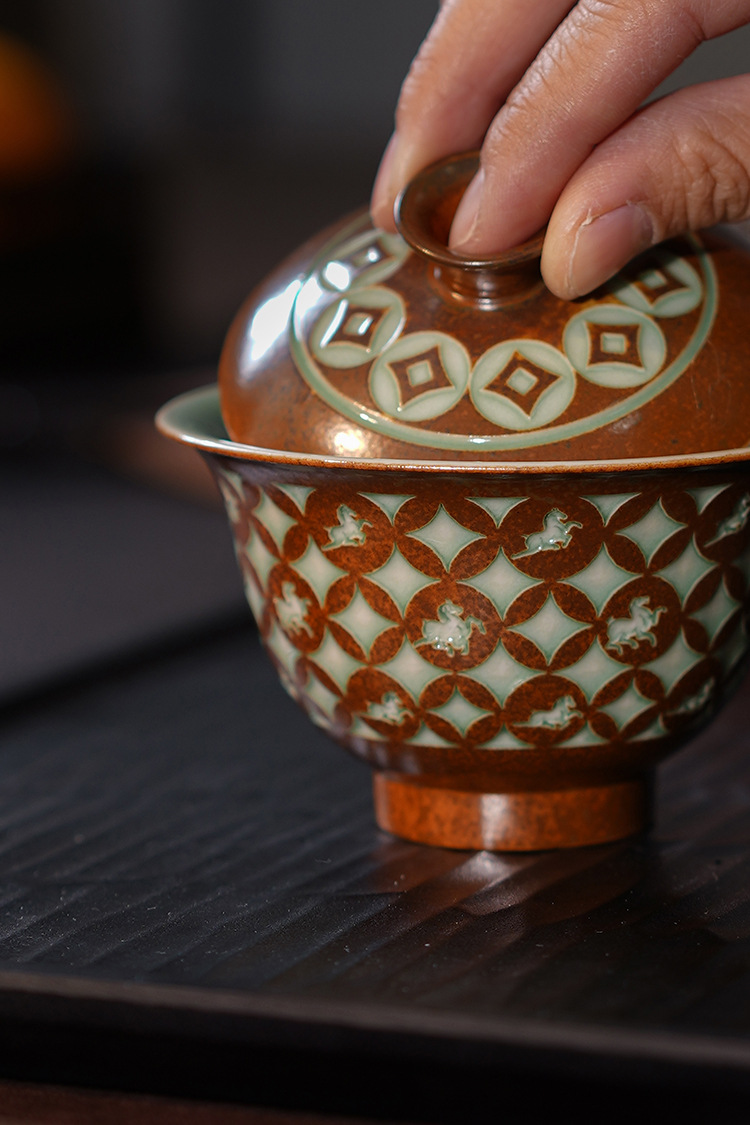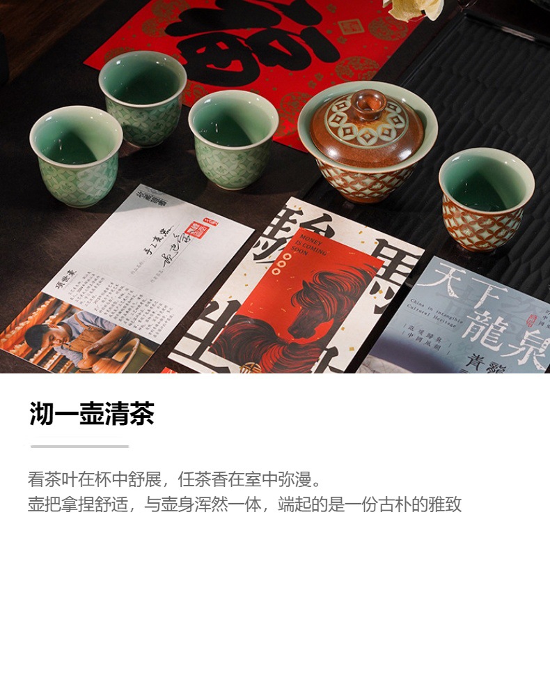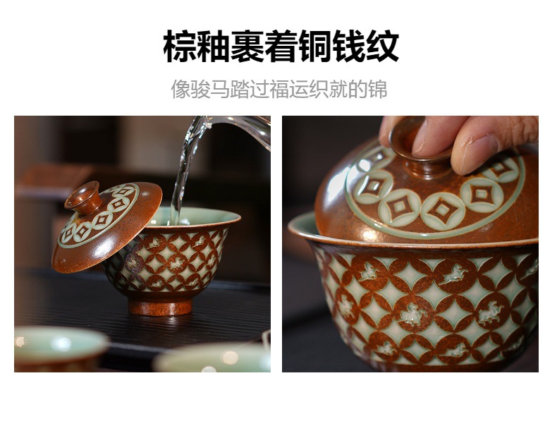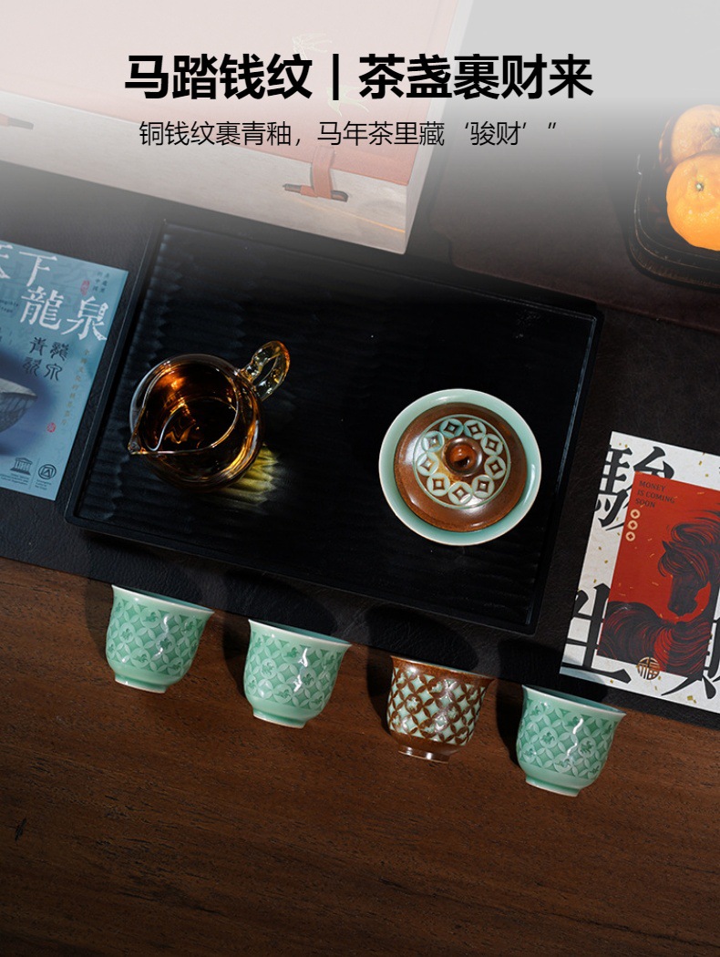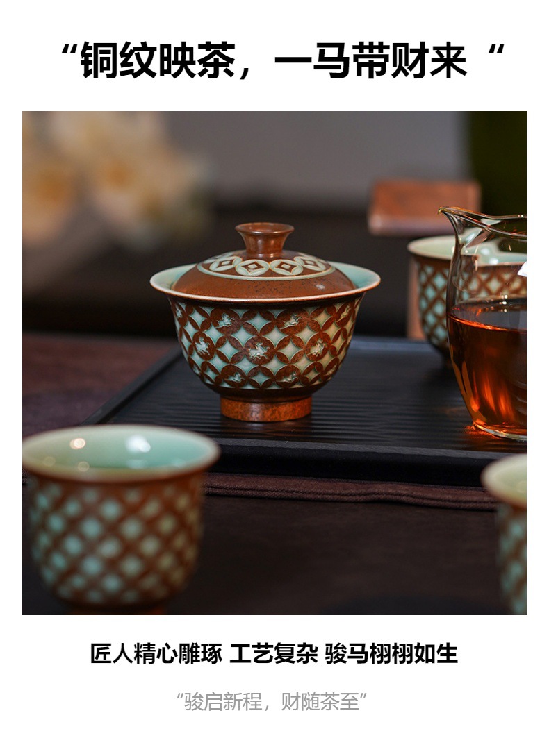 Чайный набор с медной монетой "Лошадь приносит богатство" высококлассный чайник и чашки для путешествий сувенир 2026