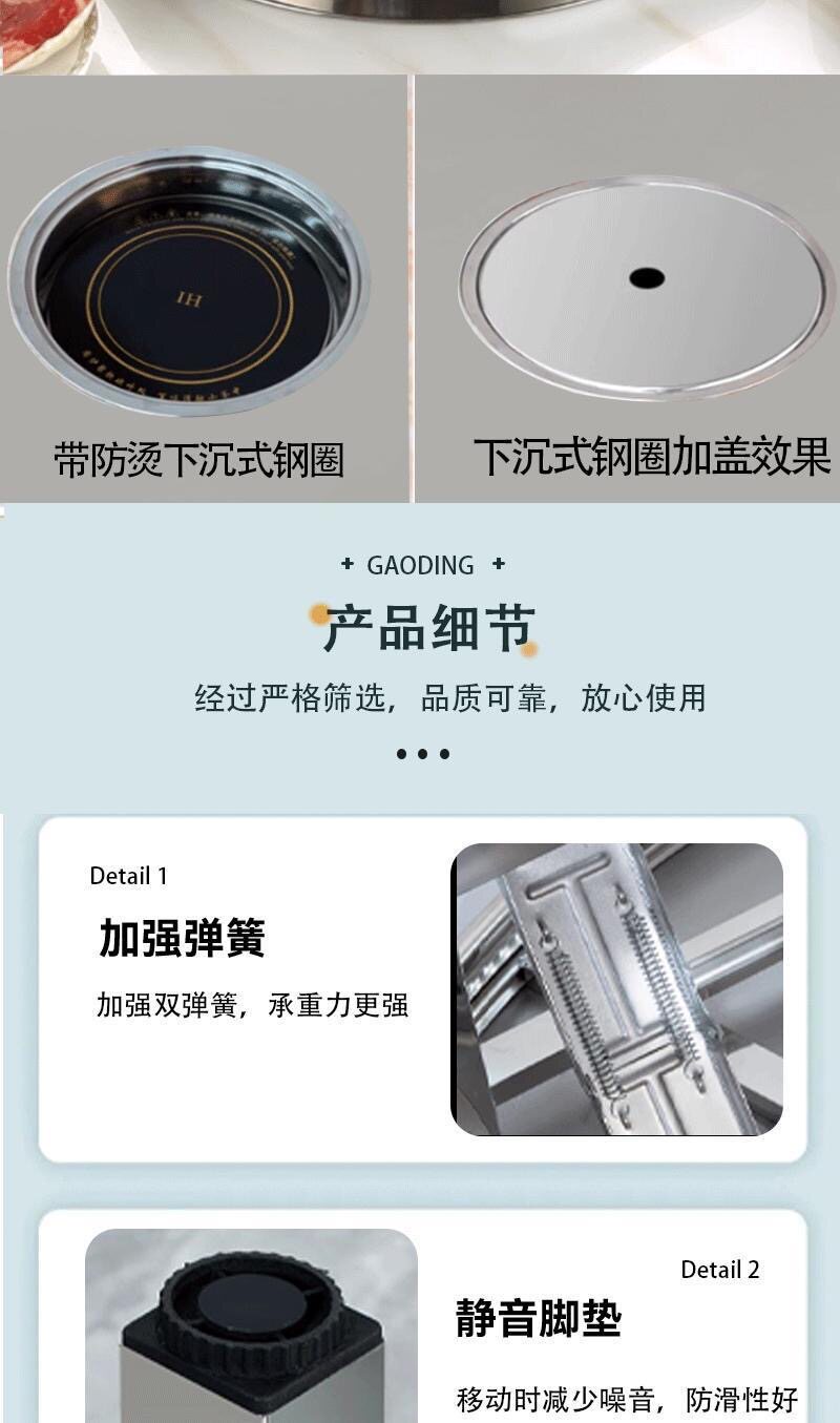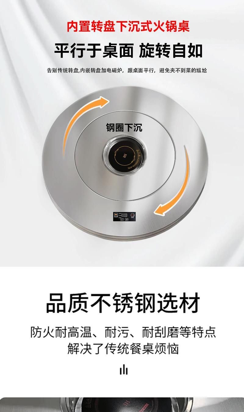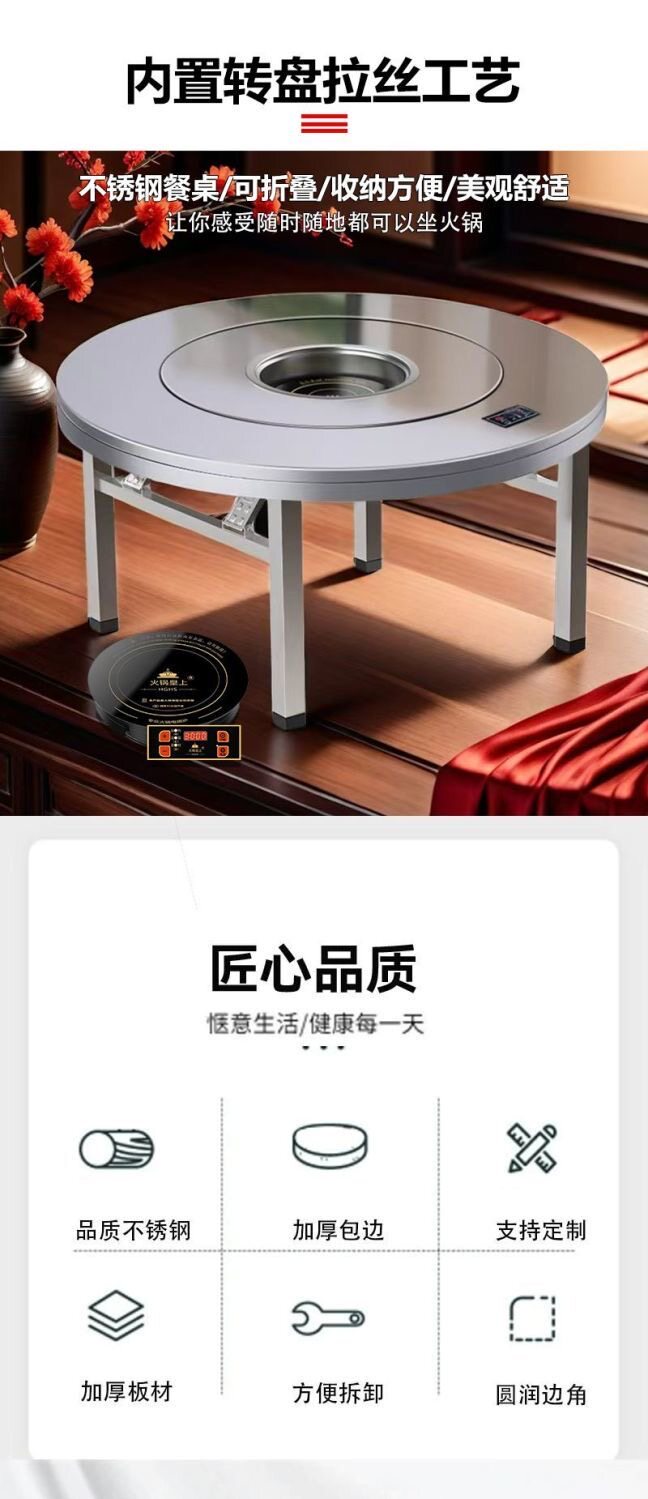 Экстра-толстый стол для хот-пота из нержавеющей стали с вращающимся столом, интегрированной индукционной плитой, без установки, складной большой круглый стол
