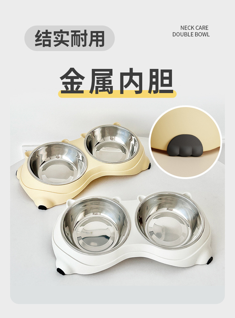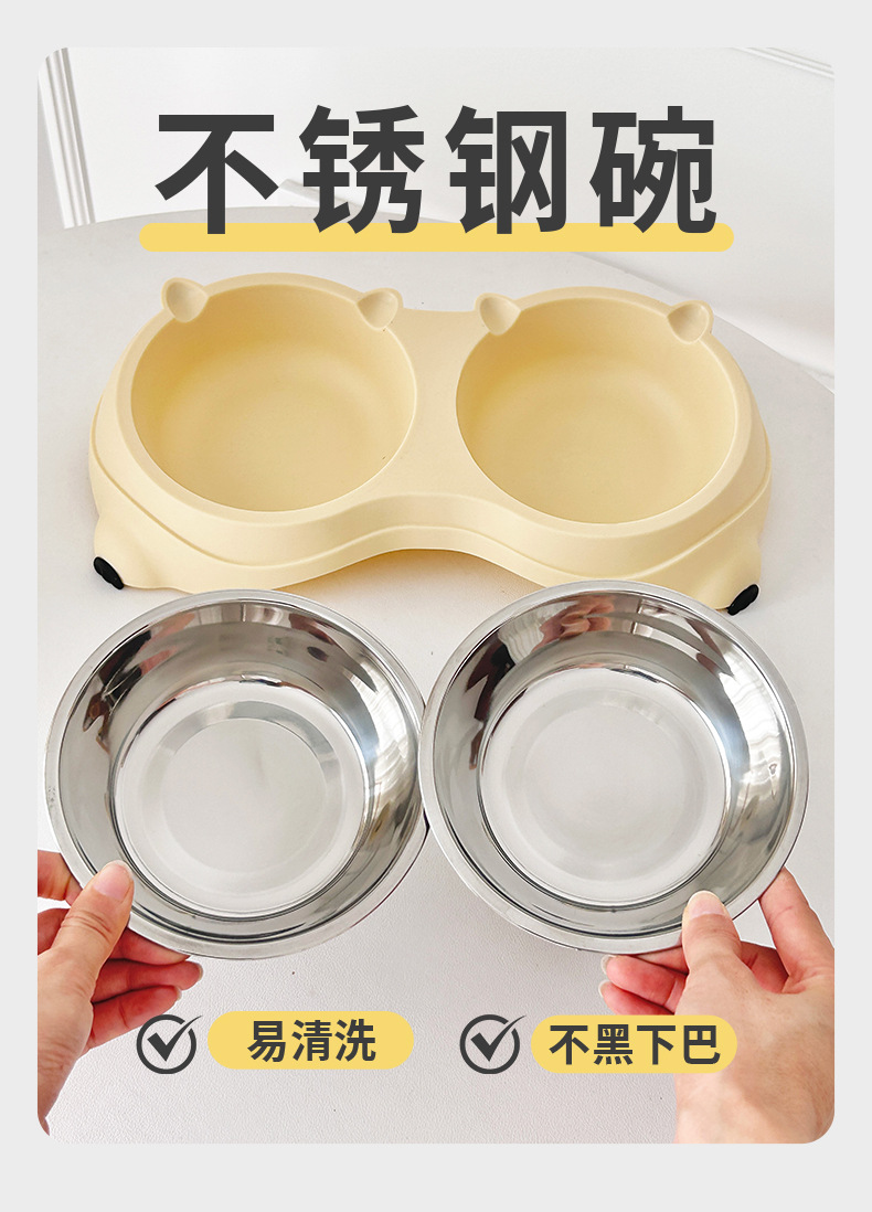 Миска для домашних животных, нескользящая, из нержавеющей стали, противоударная, двойная чаша для кошек и собак, рисовая миска