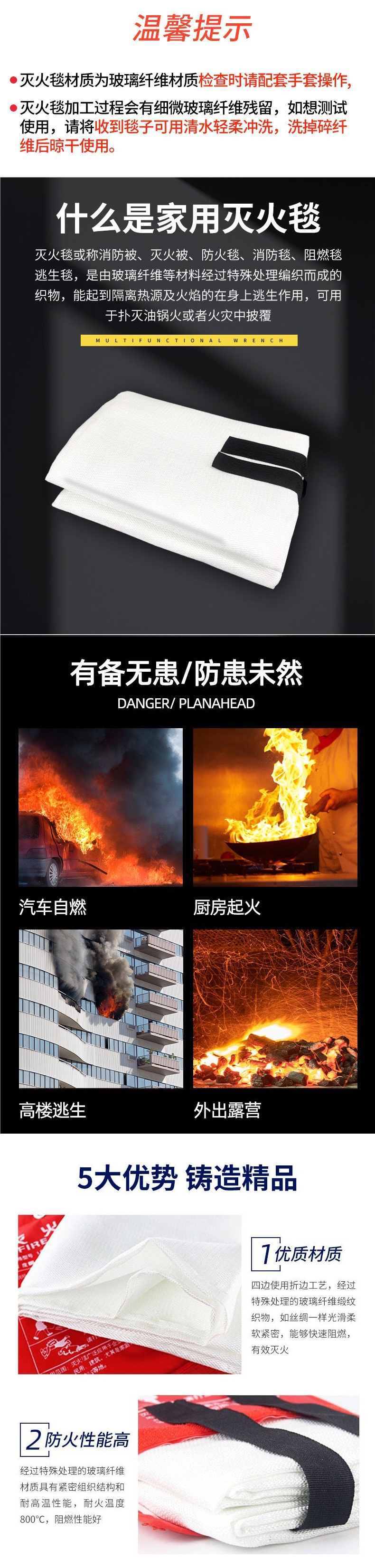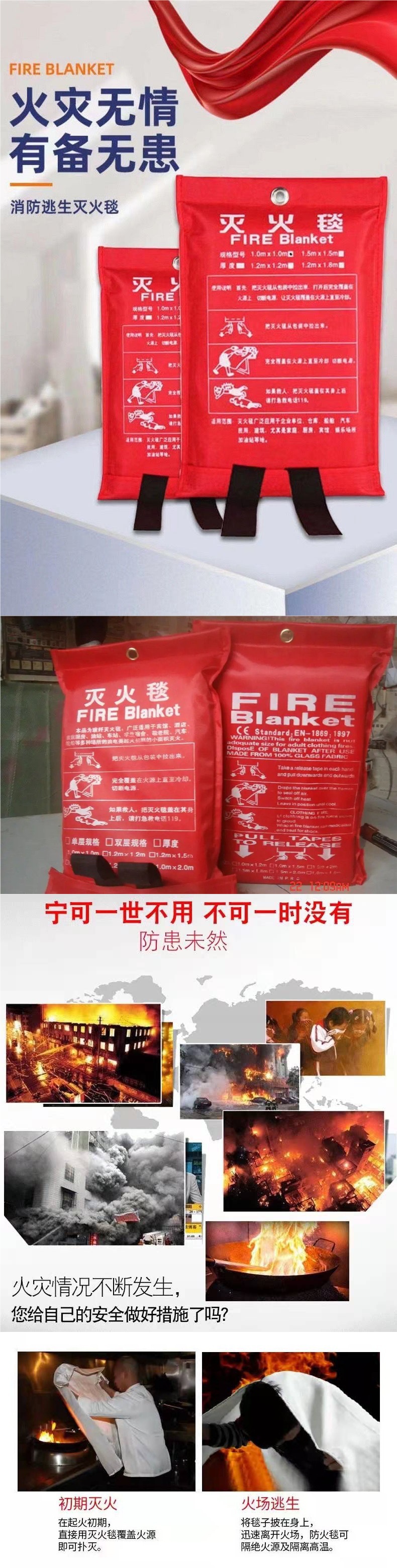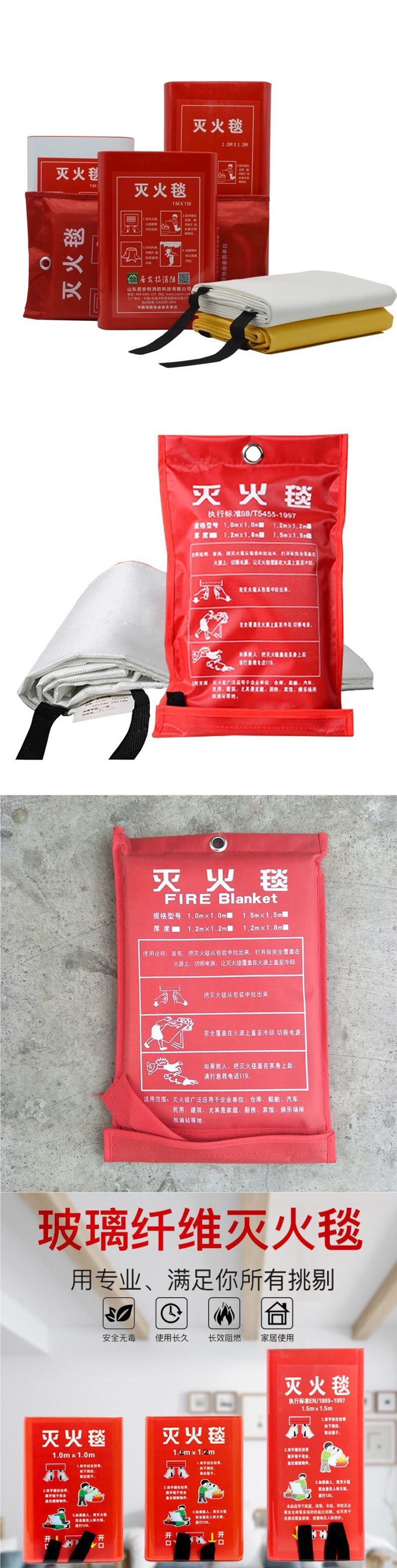 Огнетушащая простыня, сертифицированная по национальному стандарту, для спасения от огня, огнеупорная, из стекловолокна, для кухни, отеля, на улице, для дома