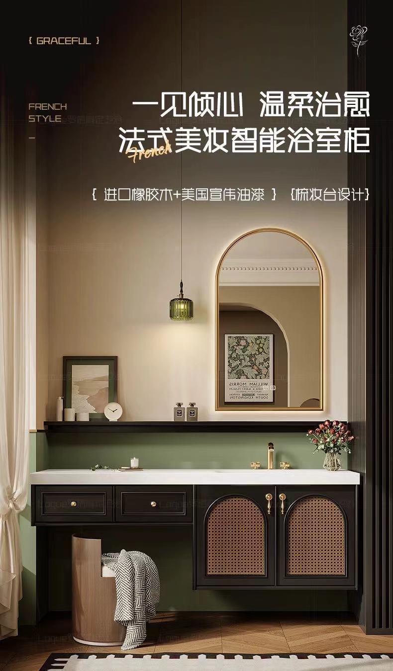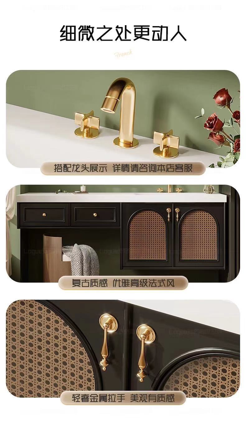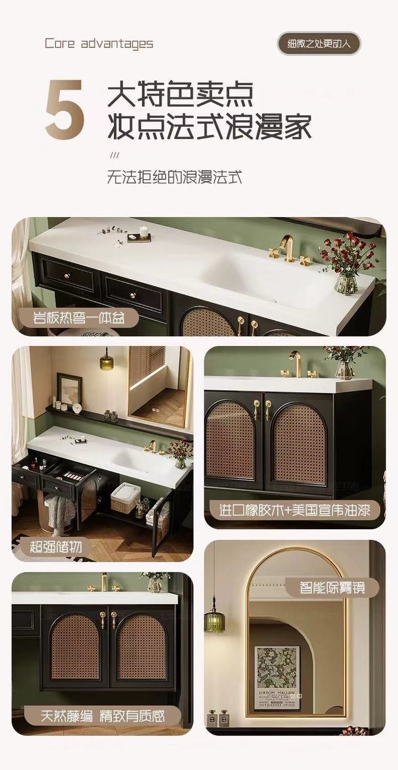 Французский ретро шкаф для ванной из дуба комбинированный туалетный столик раковина сланцевый горячий изгиб интегрированный умывальник
