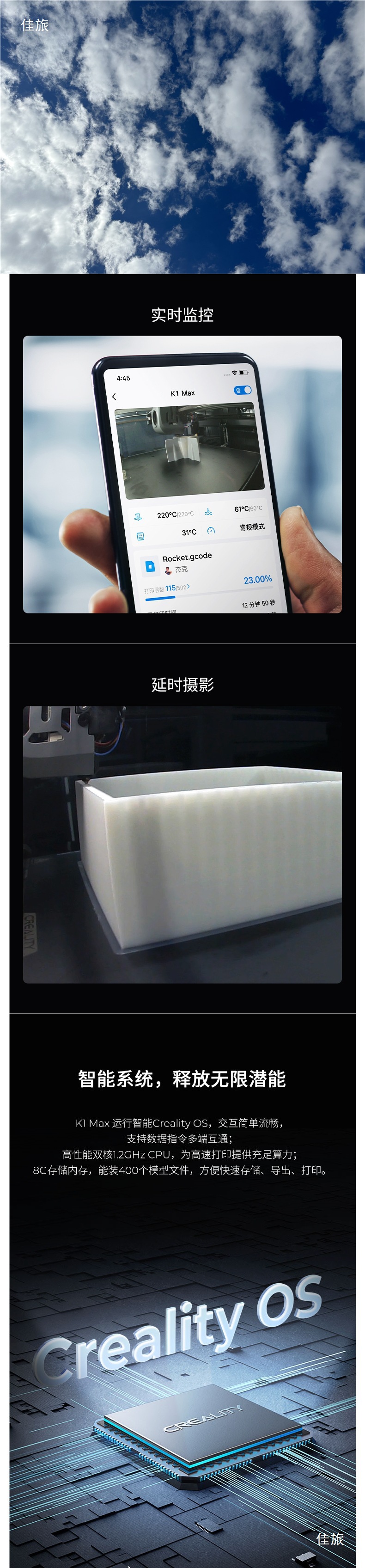 3D принтер K1Max, высокоскоростной, с автоматической настройкой, большой поток, новый продукт, удаленный доступ