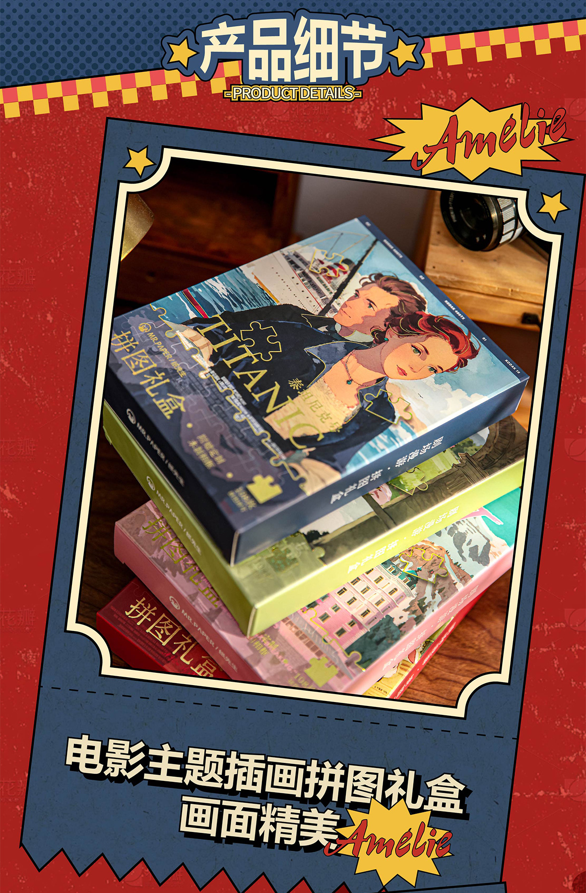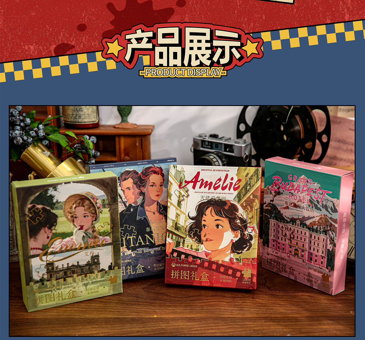 Коробка подарочная с пазлом Mr. Paper 7 дюймов 108 деталей Включает фоторамку, театральные декорации, пазл на тему кино украшения