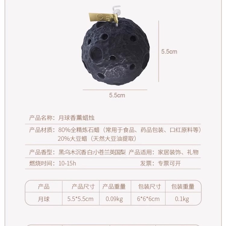 ![]() | Random moon scented candle-1 piece | ¥6.5 / ≈ 78 ₽ | 16 | 6149838418218 |