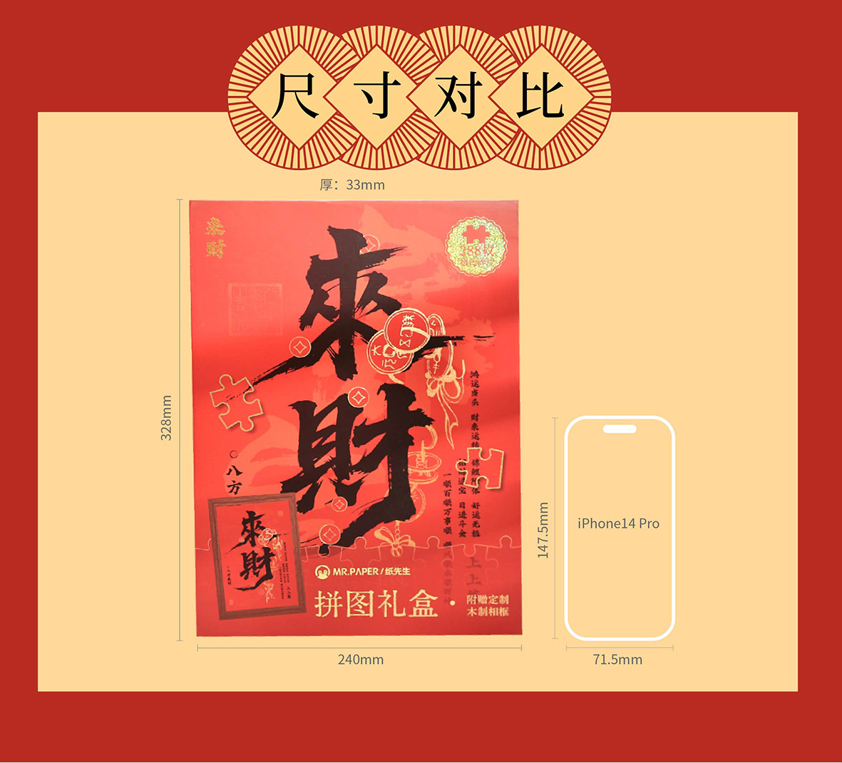 Коробка подарочная с пазлом Mr. Paper (288 крупных деталей) Удача Включает фоторамку Декоративный настольный пазл DIY украшения