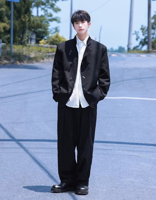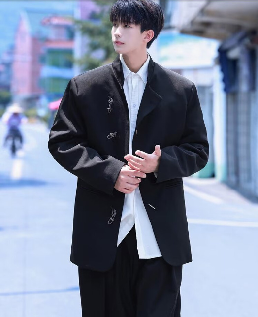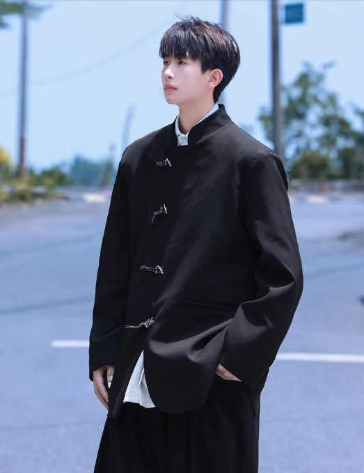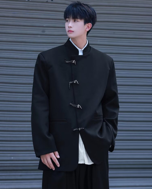 Элитная туника с плечевыми накладками, новый китайский стиль жакет, мужской нишевый дизайн китайского стиля костюма