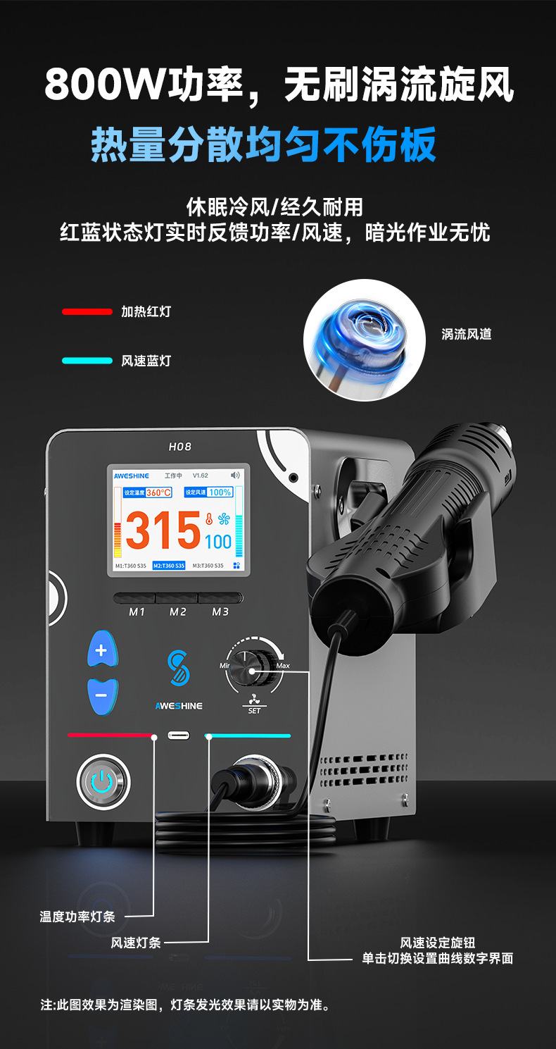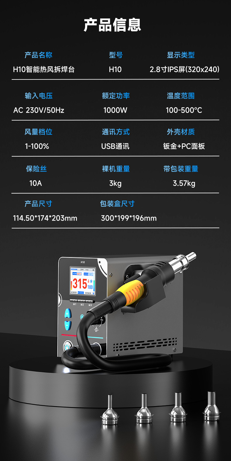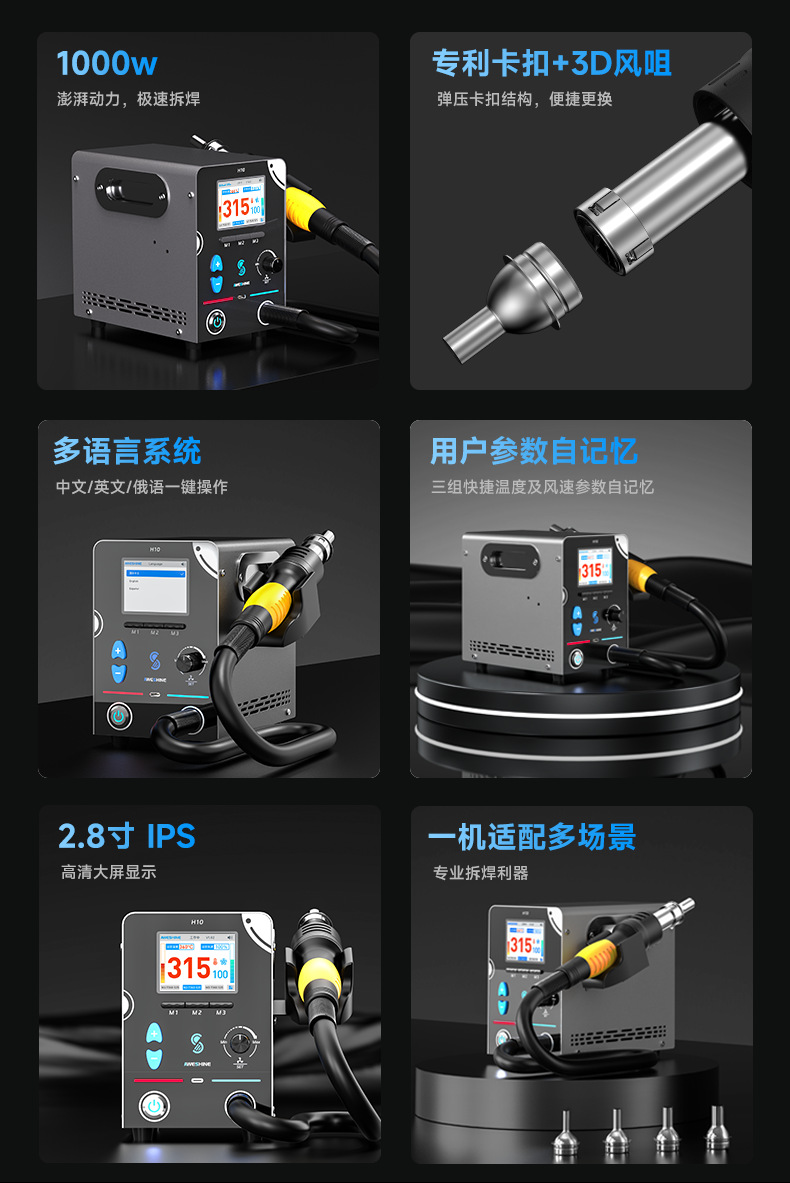 As Wolkun горячий воздушный пистолет станция для демонтажа H10 умный воздушный пистолет с криволинейным нагревом 1000W высокая мощность прямой воздушный пистолет