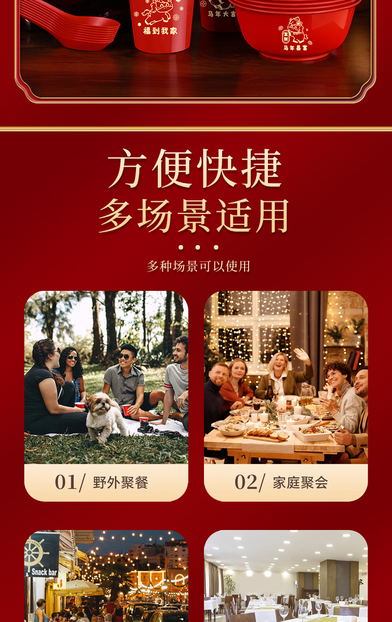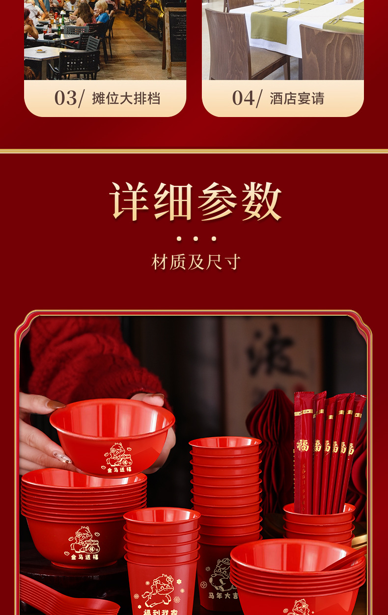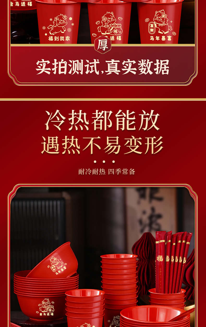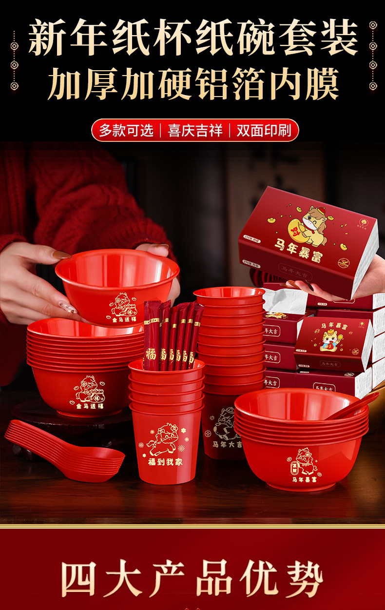 ![]() | Red | Golden horse blessing (20 bowls, cups, spoons and chopsticks, 10 packs of paper towels) | ¥27.8 / ≈ 335 ₽ | 9999 | 5985433225283 | |