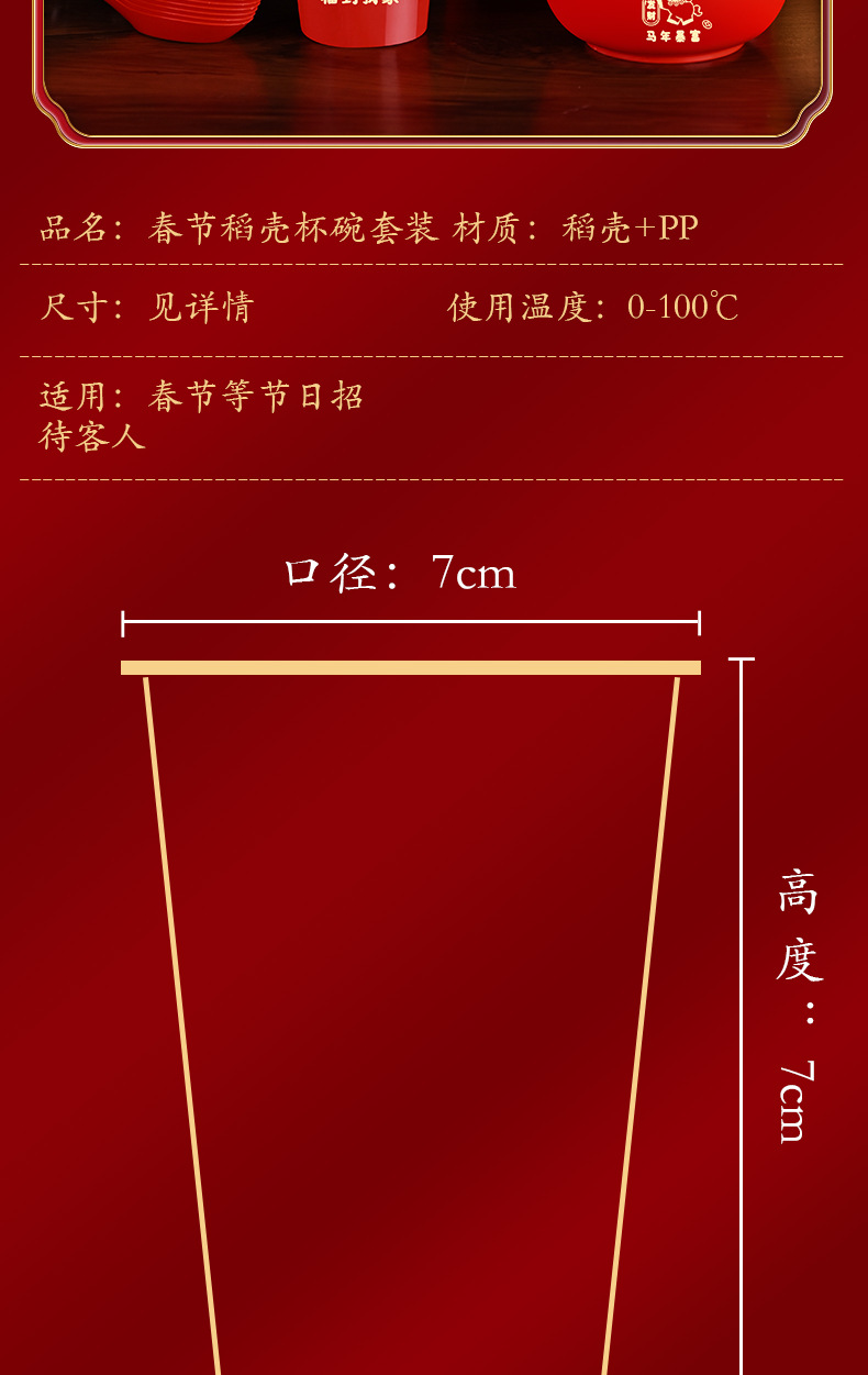 Стакан из рисовой шелухи, одноразовый стакан для воды, бумажная посуда для новогоднего праздника 2026 год Лошади, бумажная миска для новоселья