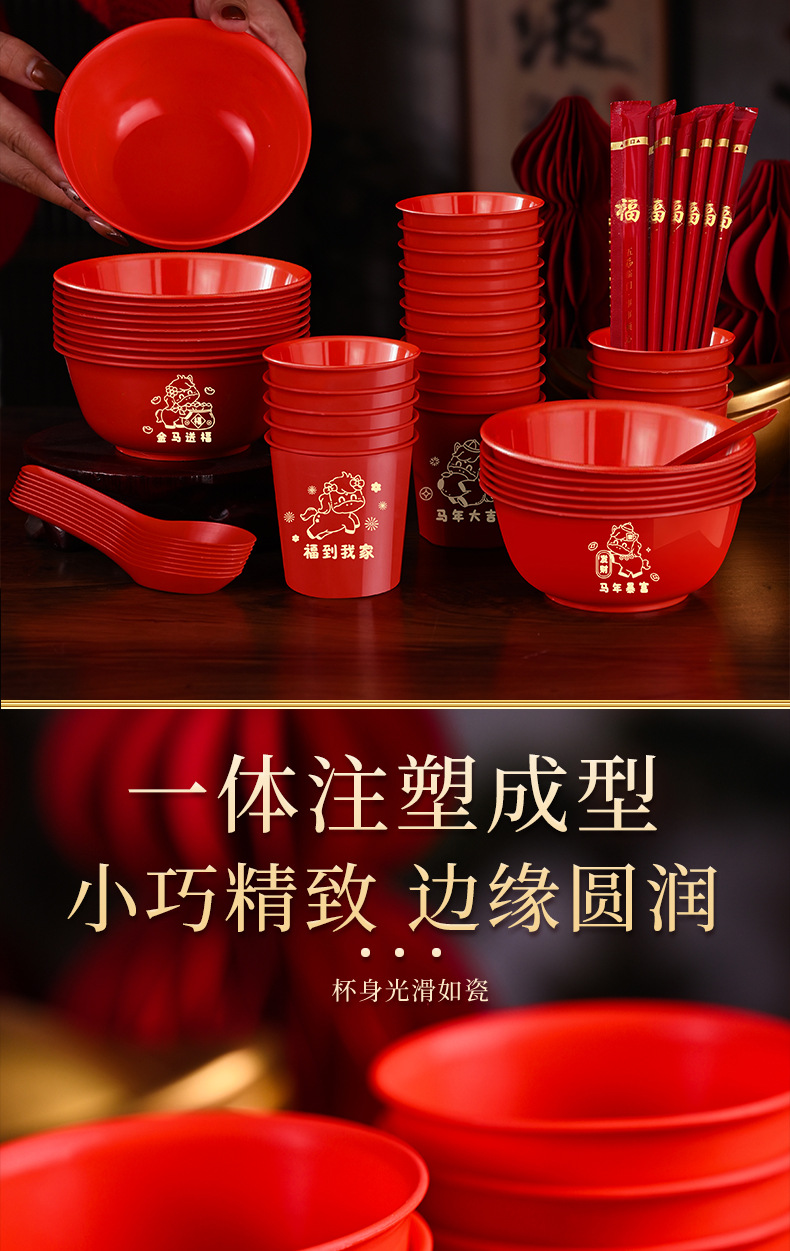 ![]() | Red | Blessings come to my home (10 bowls, cups, spoons and chopsticks, 10 packs of paper towels) | ¥17.8 / ≈ 214 ₽ | 9999 | 5985433225280 | |